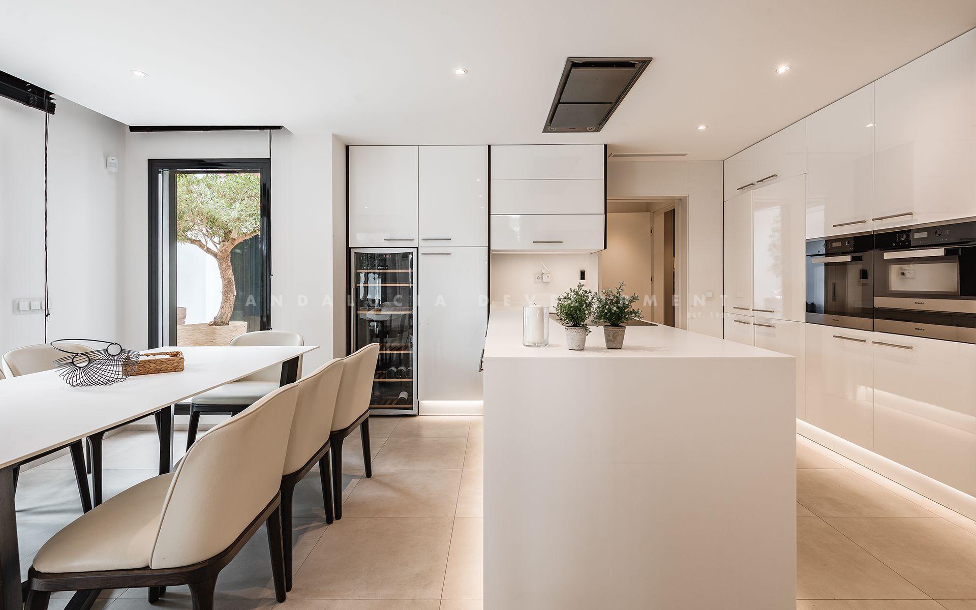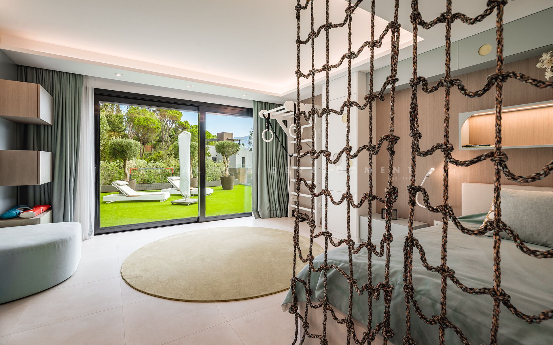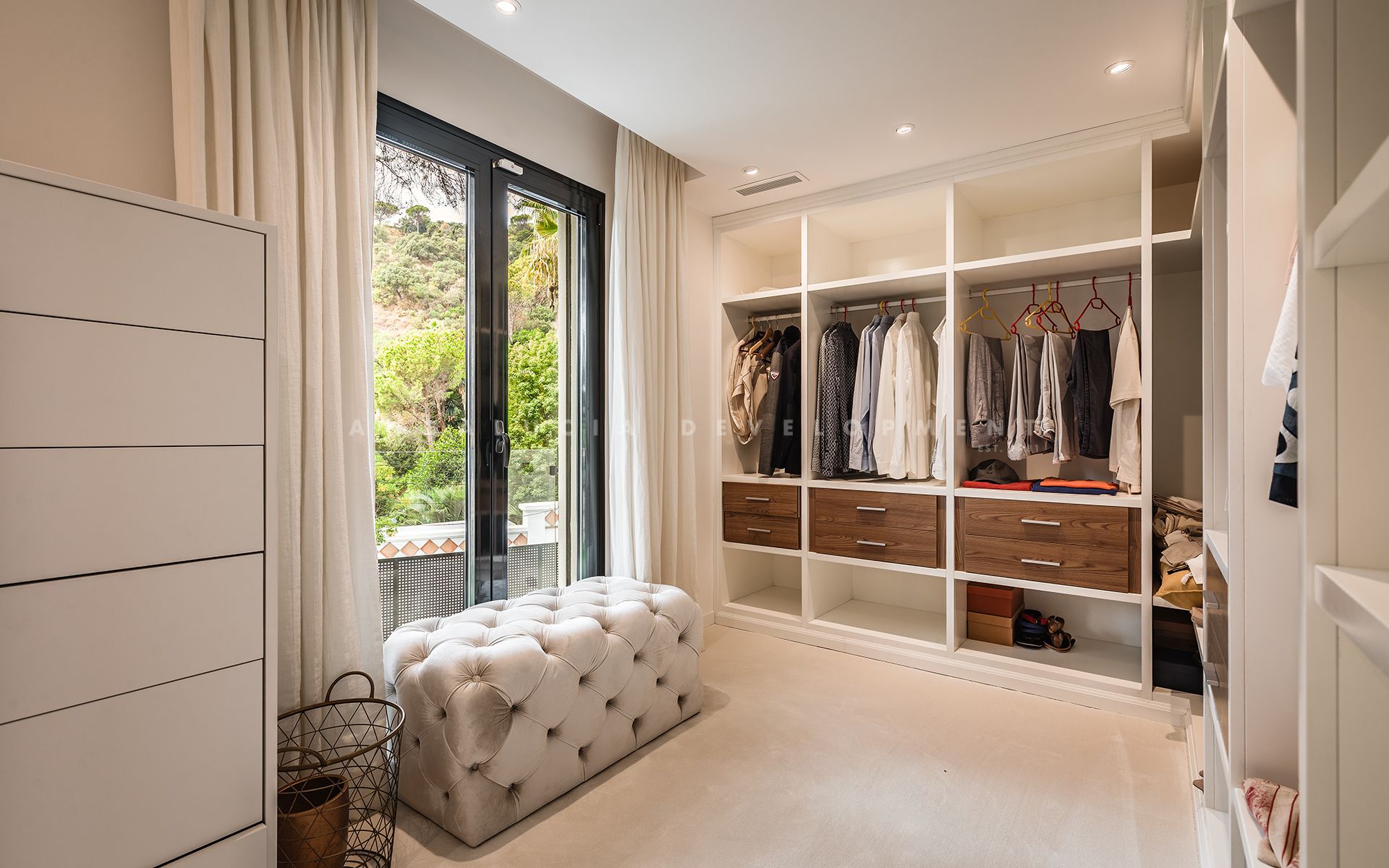 Ubicada en la prestigiosa urbanización El Madroñal, en Benahavís, esta elegante villa ofrece la combinación perfecta de privacidad, naturaleza e impresionantes vistas panorámicas a las montañas y la costa mediterránea. La propiedad se asienta sobre una generosa parcela de 1.865 m² y cuenta con 598 m² construidos distribuidos en dos plantas. La vivienda principal consta de cinco dormitorios y cuatro baños, además de un aseo de invitados. En la planta baja se encuentran el salón, el comedor y la cocina principal con acceso directo a amplias terrazas y al jardín. Justo detrás, una práctica cocina de verano ofrece espacio adicional para cocinar y disfrutar del tiempo libre. Esta planta también incluye cuatro dormitorios con baño en suite, un lavadero y un trastero. La planta superior está dedicada a la suite principal, que ofrece un luminoso dormitorio, un baño con bañera y ducha, un vestidor y una terraza privada con impresionantes vistas. Una casa de invitados independiente añade alojamiento adicional, con tres dormitorios y tres baños en dos plantas, además de zonas de estar y una cocina, lo que garantiza total privacidad para visitas o personal. En el exterior, la villa cuenta con una atractiva piscina, varias terrazas ideales para comer al aire libre y relajarse, y un jardín paisajístico. Dispone de un garaje cerrado y dos plazas de aparcamiento cubiertas adicionales. El Madroñal es famoso por su exclusividad, privacidad y un entorno natural inigualable. A pesar de su ambiente tranquilo, se encuentra a poca distancia en coche de Marbella, Puerto Banús, playas, campos de golf de renombre, colegios internacionales y servicios esenciales.