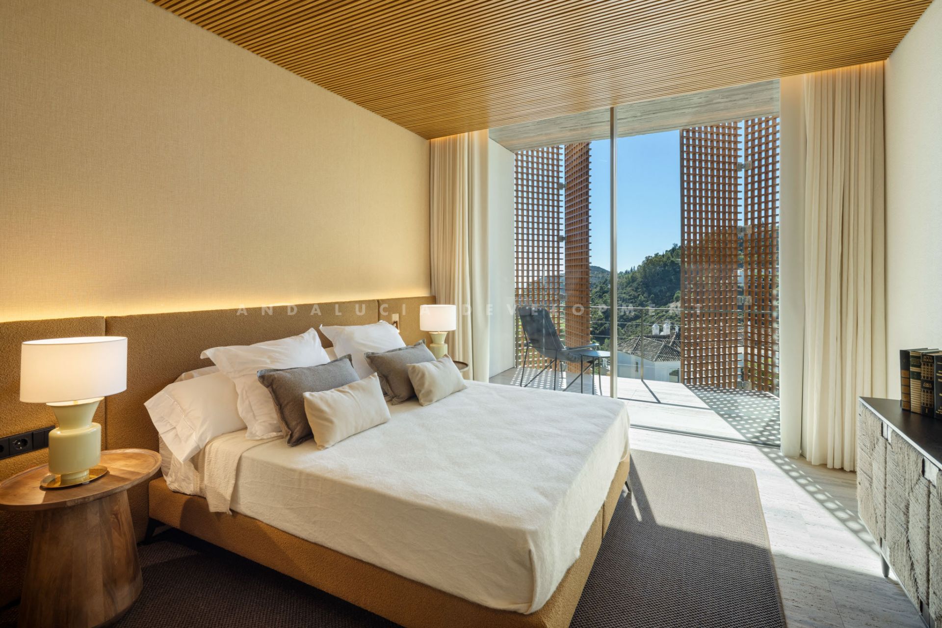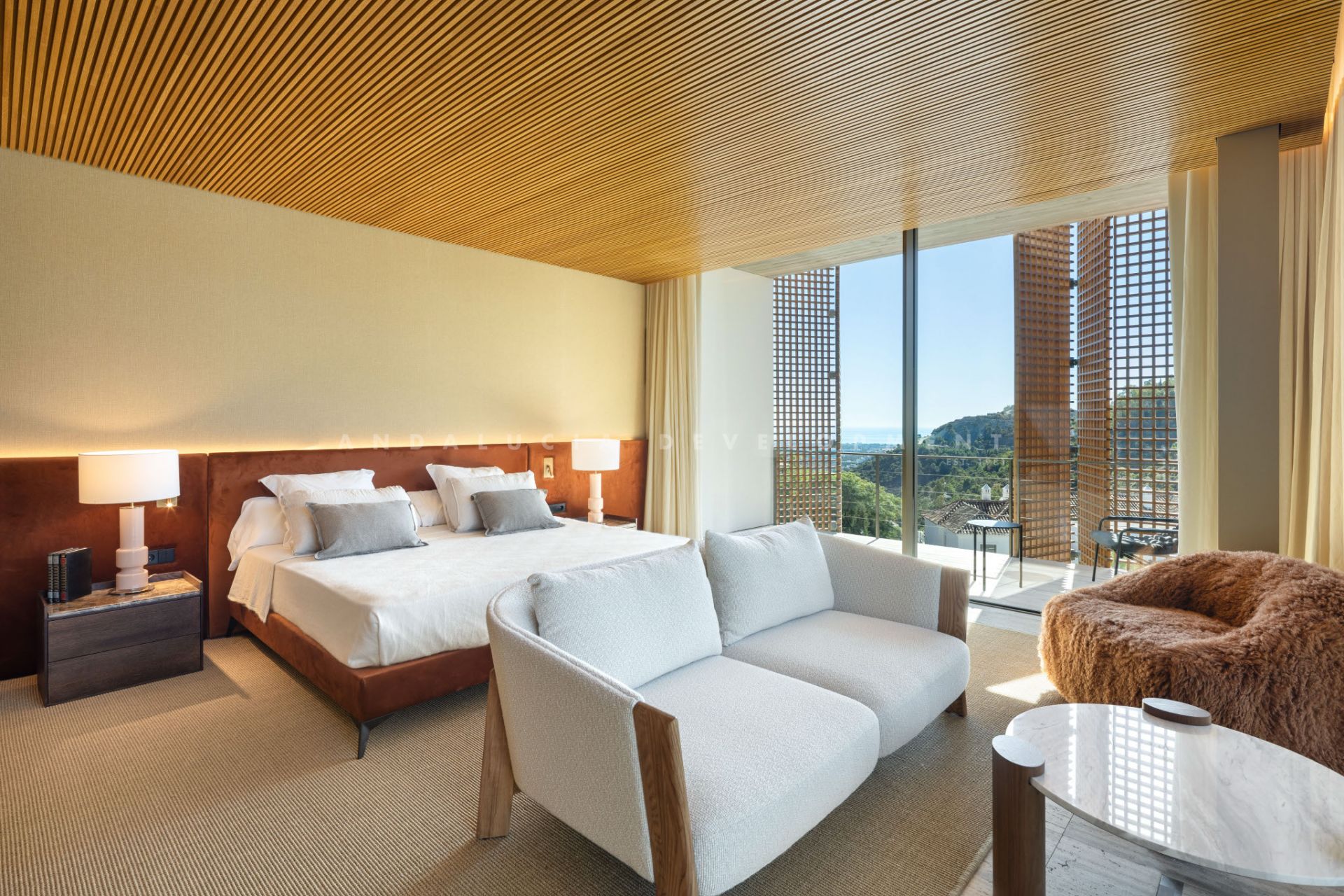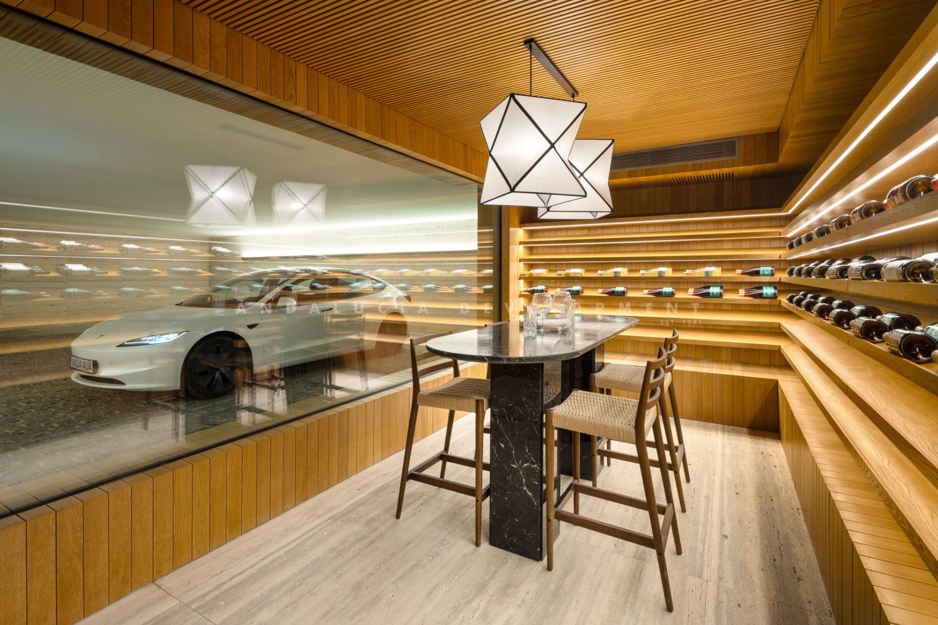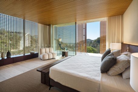 Esta villa establece un nuevo estándar de vida refinada en la prestigiosa zona de El Madroñal en Benahavís. Diseñada por el renombrado arquitecto Marcio Kogan en colaboración con Lamar Development, se ubica en una de las urbanizaciones privadas más exclusivas. Con orientación suroeste, ofrece impresionantes vistas panorámicas del mar Mediterráneo y las sierras circundantes. El diseño se integra armoniosamente con su jardín paisajístico, donde una impecable piscina ocupa un lugar central en medio del entorno natural. Esta residencia se distribuye en tres niveles, ofreciendo una amplia zona de estar con siete dormitorios, cada uno con su propio baño en suite, y un aseo de cortesía. El diseño de la villa permite que la luz natural inunde los espacios interiores y ofrece transiciones fluidas entre las áreas interiores y exteriores. Con una distribución diáfana, presenta amplios espacios para el entretenimiento o la relajación, con extensas terrazas que invitan a disfrutar de comidas al aire libre o a la contemplación bajo el sol andaluz. En su interior, cada detalle refleja la sofisticación moderna, con comodidades que incluyen una piscina climatizada y un baño turco, además de una sala de cine privada y una bodega. Estas características exclusivas crean un ambiente donde el lujo se fusiona con el confort. El mobiliario de toda la villa se ha seleccionado para armonizar con las líneas arquitectónicas modernas, garantizando una atmósfera elegante y acogedora. La comunidad se ubica en las faldas del Parque Natural Sierra de las Nieves, ofreciendo a sus residentes un enclave sereno y lujoso, conocido por su exuberante vegetación y sus impresionantes vistas. El estatus exclusivo de El Madroñal lo convierte en un lugar muy codiciado por personas de alto poder adquisitivo y celebridades, que buscan un refugio del ajetreo de la vida urbana. Este vecindario se caracteriza por sus amplias parcelas, exuberantes jardines, piscinas y terrazas, todo ello integrado en viviendas con influencias arquitectónicas andaluzas y mediterráneas. Esta villa es un testimonio de la magnificencia arquitectónica y la encarnación del gusto refinado, ideal para quienes anhelan tranquilidad y lujo en la célebre Costa del Sol española. Cada detalle arquitectónico y la elección de materiales subrayan un compromiso con la excelencia y la sostenibilidad. Desde tecnologías domésticas de vanguardia hasta electrodomésticos de alta gama, la villa garantiza que cada aspecto de la propiedad cumpla propósitos tanto estéticos como funcionales. Los espacios exteriores celebran el clima favorable de la región con dos atractivas piscinas y múltiples terrazas diseñadas para reuniones relajadas mientras se disfruta de vistas impresionantes. La estratégica orientación de la villa garantiza hermosas puestas de sol sobre el Mediterráneo, convirtiendo cada momento aquí en una escena idílica. Esta propiedad trasciende la mera residencia, ofreciendo un refugio experiencial donde el lujo y la serenidad se fusionan. Está meticulosamente diseñada para inspirar bienestar y brindar un ocio incomparable.