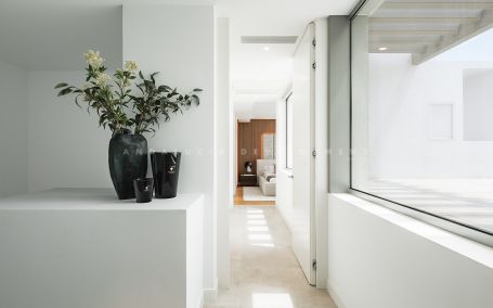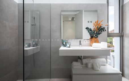 Situada en la tranquila y consolidada zona residencial de El Paraíso, esta elegante villa contemporánea goza de una ubicación privilegiada en la Nueva Milla de Oro de Marbella, a poca distancia en coche de Puerto Banús, San Pedro de Alcántara y Estepona. Diseñada con un enfoque en la luminosidad, el espacio y la comodidad, la propiedad se distribuye en tres niveles y ofrece una distribución refinada, ideal para la vida moderna. La planta principal cuenta con un espacioso salón-comedor de planta abierta, conectado a la perfección con una cocina alemana de alta gama totalmente equipada. Grandes puertas correderas se abren a amplias terrazas parcialmente cubiertas con zonas de estar y comedor al aire libre, perfectas para disfrutar del clima de la Costa del Sol durante todo el año. La villa consta de cinco amplios dormitorios, todos con baño en suite, además de un aseo de invitados. Los interiores cuentan con suelos de madera natural, calefacción por suelo radiante y persianas eléctricas, lo que proporciona un equilibrio perfecto entre estilo y funcionalidad.