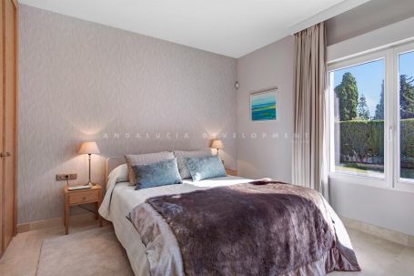 La villa Santa Clara se encuentra en Guadalmina Baja, una de las zonas más codiciadas de Marbella Oeste. Esta urbanización, ubicada en un entorno prestigioso y seguro, alberga las villas privadas más impresionantes de la costa. Con una parcela de 1.880 m², Villa Santa Clara cuenta con más de 500 m² construidos y unos 200 m² de terrazas y porches. Los materiales y acabados son de alta calidad. Además, cuenta con suelo radiante en toda la casa y paneles solares. La grifería y los accesorios de todos los baños son de Philippe Starck. Los muebles no están incluidos. Cada habitación tiene bonitas vistas abiertas y su propio baño en suite. Además, el dormitorio principal cuenta con vestidor. El estilo y el entorno de esta propiedad dan la sensación de estar en un cortijo mediterráneo, donde los jardines maduros y frondosos le harán sentir en su propio paraíso privado. Guadalmina Baja lo tiene todo. En una zona segura y tranquila, se encuentra a pocos pasos de la playa, el supermercado, los restaurantes y bares del Centro Comercial Guadalmina. Se encuentra a pocos minutos de colegios privados internacionales, instalaciones deportivas, el Club de Golf de Guadalmina y todos los servicios de San Pedro y Marbella, incluyendo las lujosas tiendas y restaurantes de Puerto Banús. Si desea saber más sobre esta excepcional villa, no dude en contactarnos para concertar una visita.
