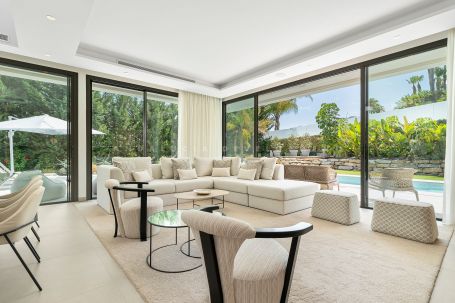 Villa situada en la prestigiosa urbanización de La Cerquilla, Nueva Andalucia. Con una orientación hacia el sur, esta Villa ofrece vistas impresionantes del campo de golf, montañas y un hermoso jardín. Los interiores muestran una mezcla armoniosa de lujo y modernidad, caracterizada por materiales y especificaciones de alta calidad que corren constantemente por toda la casa. Consta de cuatro amplios dormitorios y un número igual de baños, esta Villa garantiza una vida de confort. La distribución en sus tres niveles ha sido pensada para maximizar el espacio y proporcionar un flujo sin fisuras entre las zonas. Una deliciosa combinación de terrazas cubiertas y descubiertas invita a los residentes a empaparse en la belleza del entorno, ya sea para un café tranquilo por la mañana o para una reunión nocturna. El jardín privado, un oasis de vegetación, complementa la fachada de la Villa, que conduce a una hermosa piscina en forma de L que ilumina hermosamente por la noche. Una atractiva sala de juegos se convierte en el punto focal para el entretenimiento, mientras que una bodega controlada por el clima es el sueño del conocedor. La propiedad impresiona aún más con su extensa entrada que conduce a un amplio garaje. La conveniencia está en la puerta de la Villa. Las comodidades esenciales como tiendas, restaurantes, escuelas y la playa están a pocos minutos en coche.