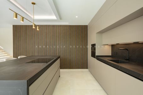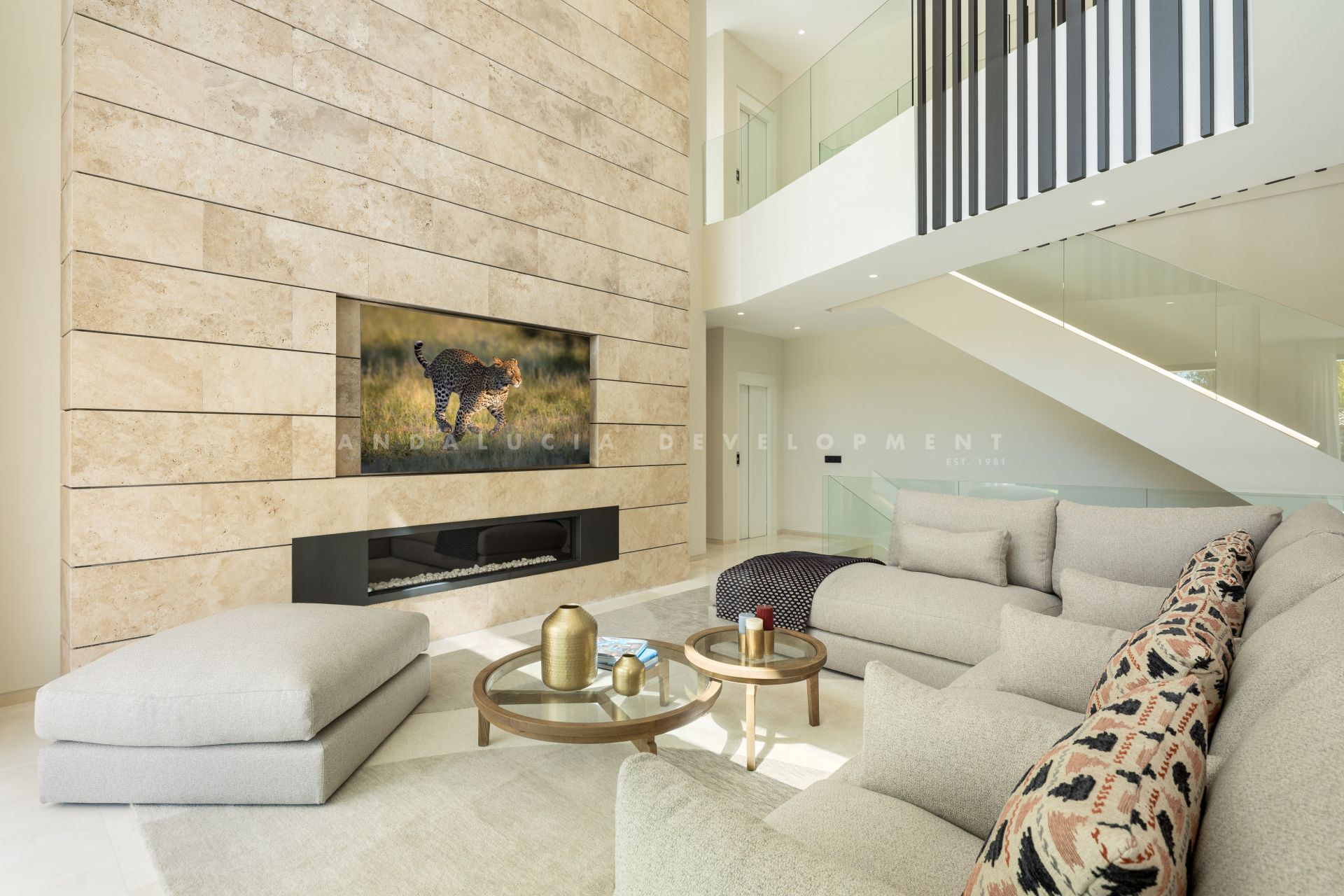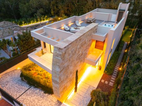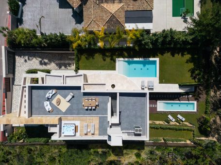 Ubicada en el exclusivo enclave de La Cerquilla, esta excepcional villa a estrenar en venta es una obra maestra del lujo contemporáneo, con cinco amplias habitaciones y siete baños elegantemente equipados distribuidos en cuatro niveles meticulosamente diseñados. Una imponente entrada de doble altura crea una inmediata sensación de grandeza, inundando la casa de luz natural y marcando la pauta para los elegantes interiores. La sala de estar principal cuenta con una elegante chimenea y se integra a la perfección con una cocina de planta abierta, diseñada tanto para el día a día como para recibir invitados con sofisticación. La propiedad se ve realzada por un sistema de domótica de última generación y un avanzado sistema automático de renovación de aire, que garantizan un confort, eficiencia y calidad del aire óptimos en toda la casa. En este nivel, una habitación de invitados con baño privado disfruta de tranquilas vistas al jardín, brindando comodidad y privacidad. La primera planta está dedicada a un estilo de vida refinado, destacando una impresionante suite principal con un espectacular vestidor y un lujoso baño privado. Una habitación de invitados adicional con baño privado también se encuentra en este nivel, manteniendo el alto nivel de confort de la casa en toda la propiedad. Al subir al solárium de la azotea, descubrirá un auténtico oasis de tranquilidad. Con jacuzzi y zona de estar, este espacio ofrece impresionantes vistas de la sierra de La Concha, perfectas para disfrutar de cócteles al atardecer y veladas relajantes bajo el cielo mediterráneo. La planta baja está diseñada para el ocio y la funcionalidad, con un gimnasio totalmente equipado, una bodega a medida, un segundo salón y una cocina adicional con barra. Esta planta también incluye dos habitaciones de invitados con baño privado, ambas con acceso directo a una piscina secundaria y jardines paisajísticos, creando un refugio privado para los huéspedes. Un garaje para tres coches y un aseo de cortesía completan esta planta. Combinando un diseño vanguardista con lujosas comodidades, esta villa ofrece una experiencia de vida inigualable en una de las zonas más exclusivas de Marbella. La propiedad también cuenta con un ascensor que facilita el acceso a todas las plantas, mejorando la comodidad y la accesibilidad. Esta villa destaca por su amplitud, distribución y versatilidad, ofreciendo una experiencia de vida moderna en un entorno residencial consolidado, caracterizado por la privacidad, el confort y la accesibilidad.