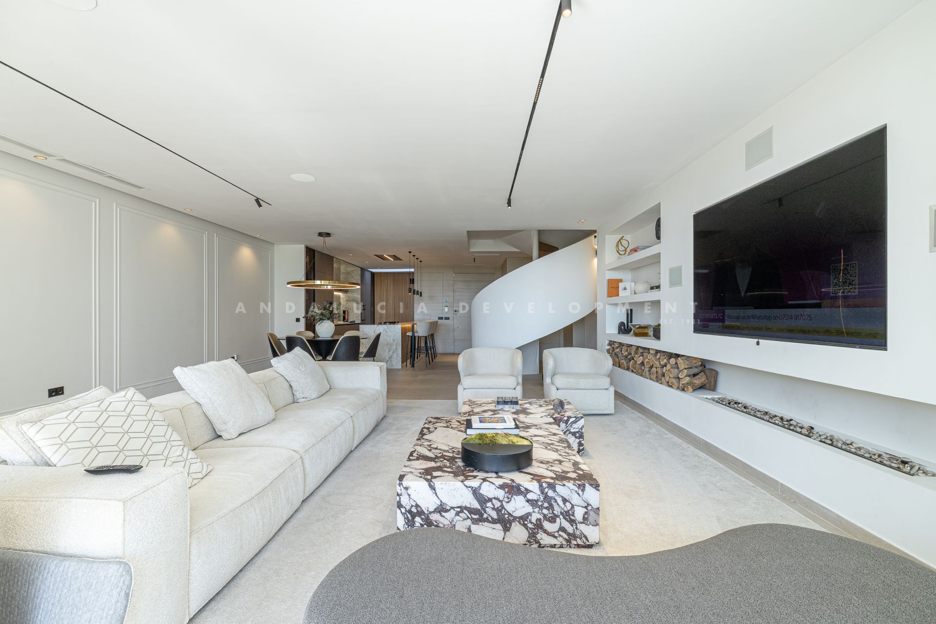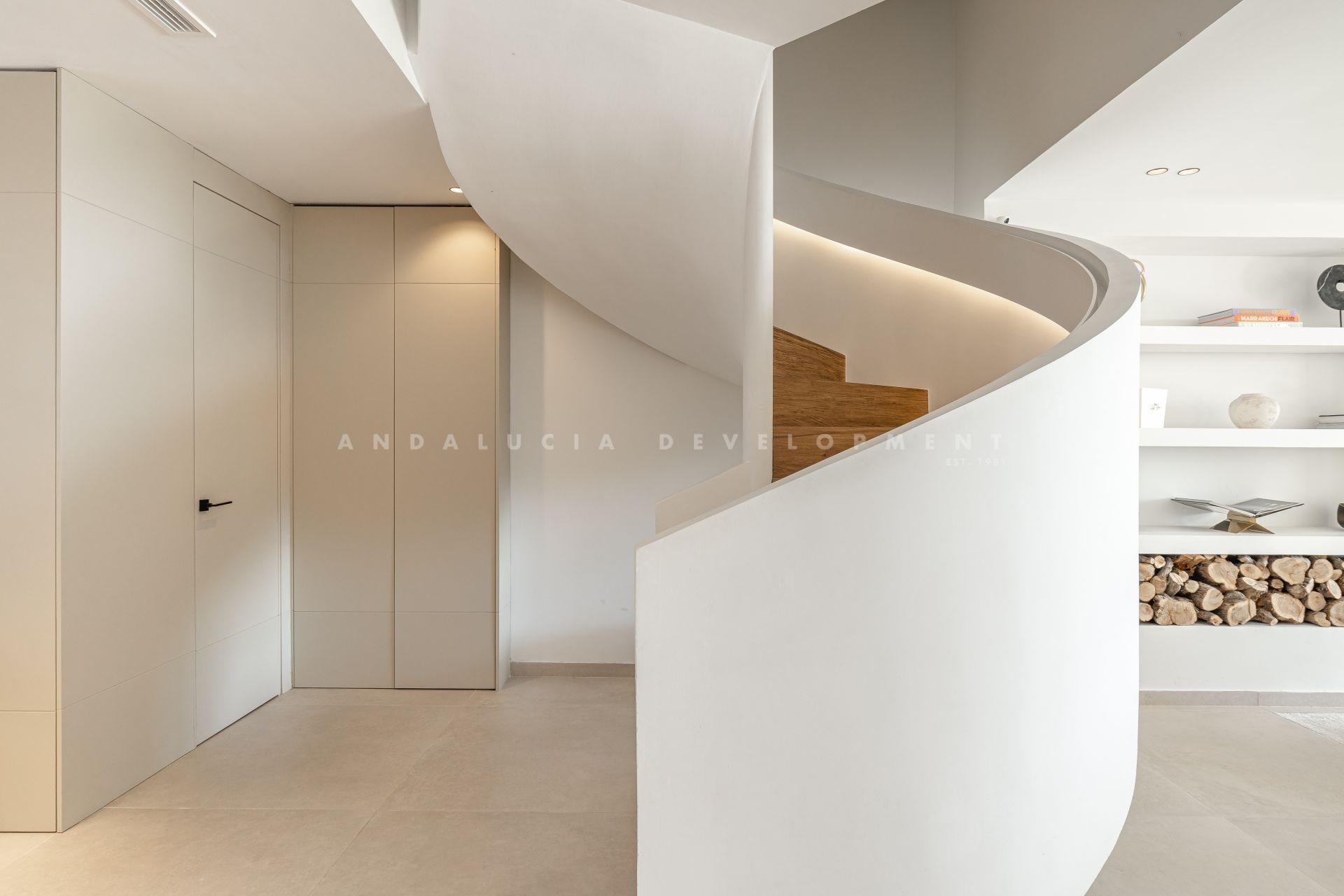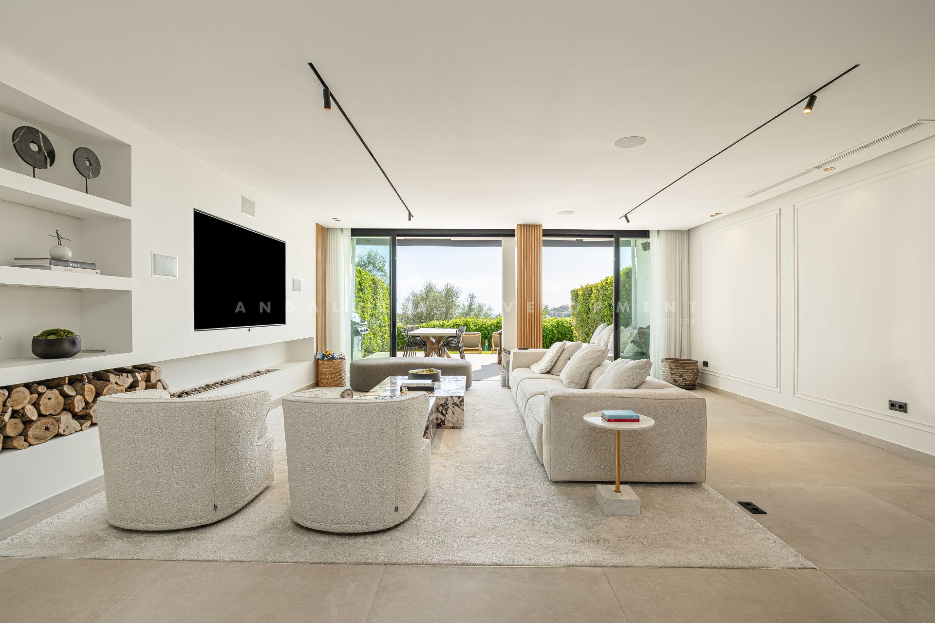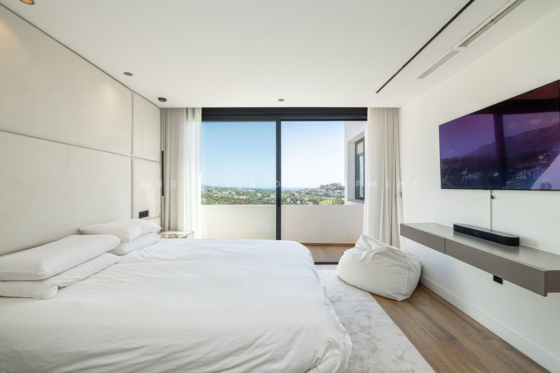 Elegante casa adosada con impresionantes vistas en La Quinta Golf. Ubicada en la prestigiosa comunidad de La Quinta Golf, esta casa adosada, bellamente renovada, ofrece impresionantes vistas al mar, al campo de golf y a la montaña desde todos los niveles. Diseñada para el lujo moderno, la casa cuenta con una luminosa sala de estar de planta abierta, una elegante cocina Barazza con isla central y una elegante chimenea de bioetanol. Amplias puertas correderas de suelo a techo dan a una espaciosa terraza, ideal para comer al aire libre y relajarse. La primera planta alberga tres elegantes dormitorios con baño en suite, dos de ellos con terraza privada. La suite principal, en la planta superior, ofrece un refugio privado con un lujoso baño en suite que incluye ducha de efecto lluvia y bañera exenta con vistas panorámicas. Equipada con un sistema de domótica, calefacción por suelo radiante, aire acondicionado integrado, sistema de sonido envolvente Sonos y wifi por cable, la residencia combina comodidad y funcionalidad de vanguardia. Otras características destacadas incluyen un sistema antical, un grifo de agua hirviendo instantáneo, dos plazas de aparcamiento privadas y un avanzado sistema de seguridad. Con su elegancia contemporánea y ubicación privilegiada en una de las zonas más solicitadas de Marbella, esta casa adosada es perfecta como residencia permanente, una escapada de vacaciones o una distinguida oportunidad de inversión.