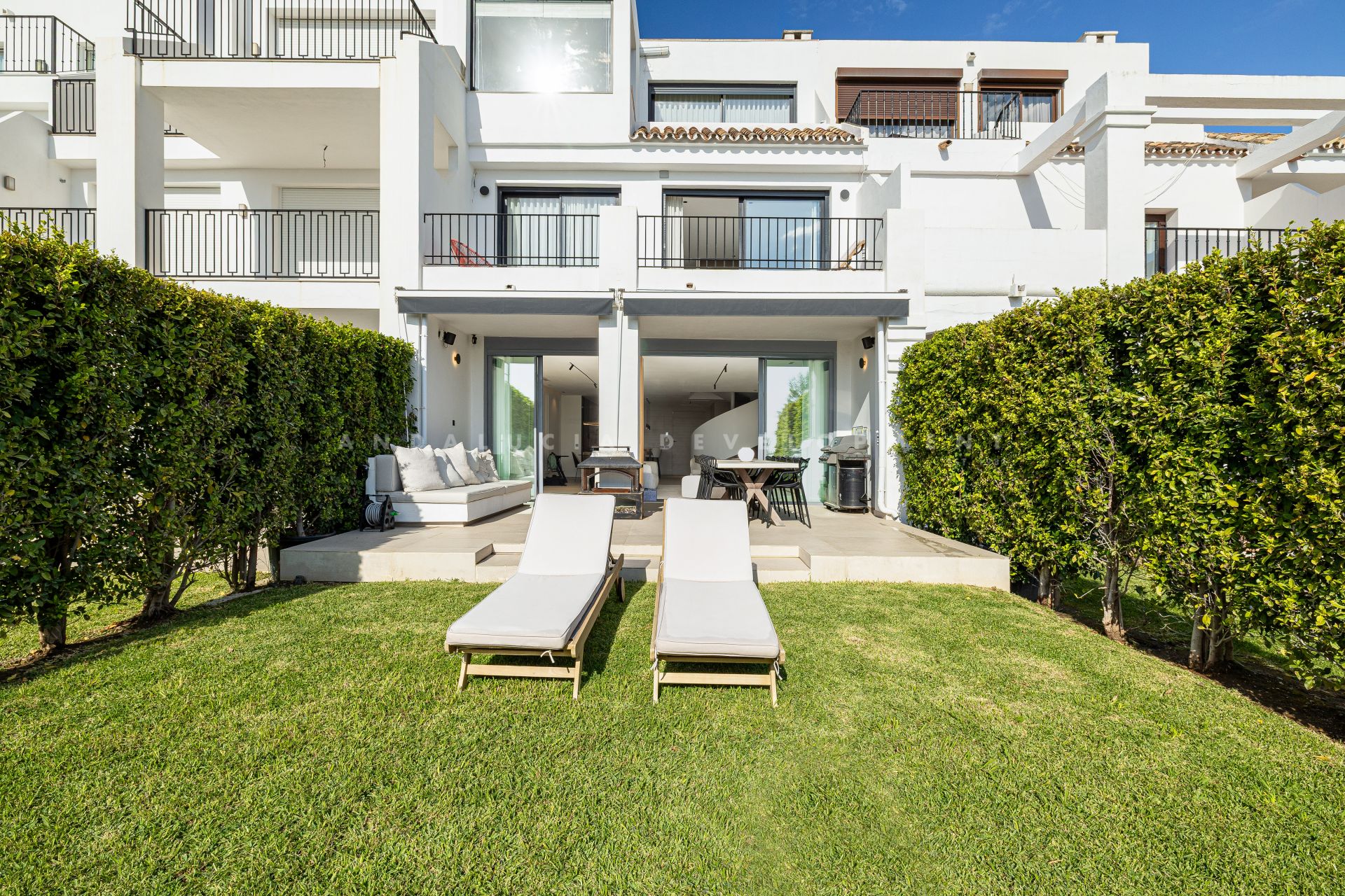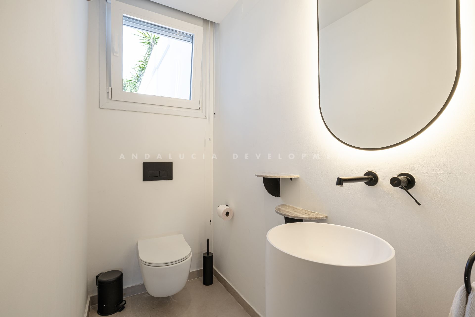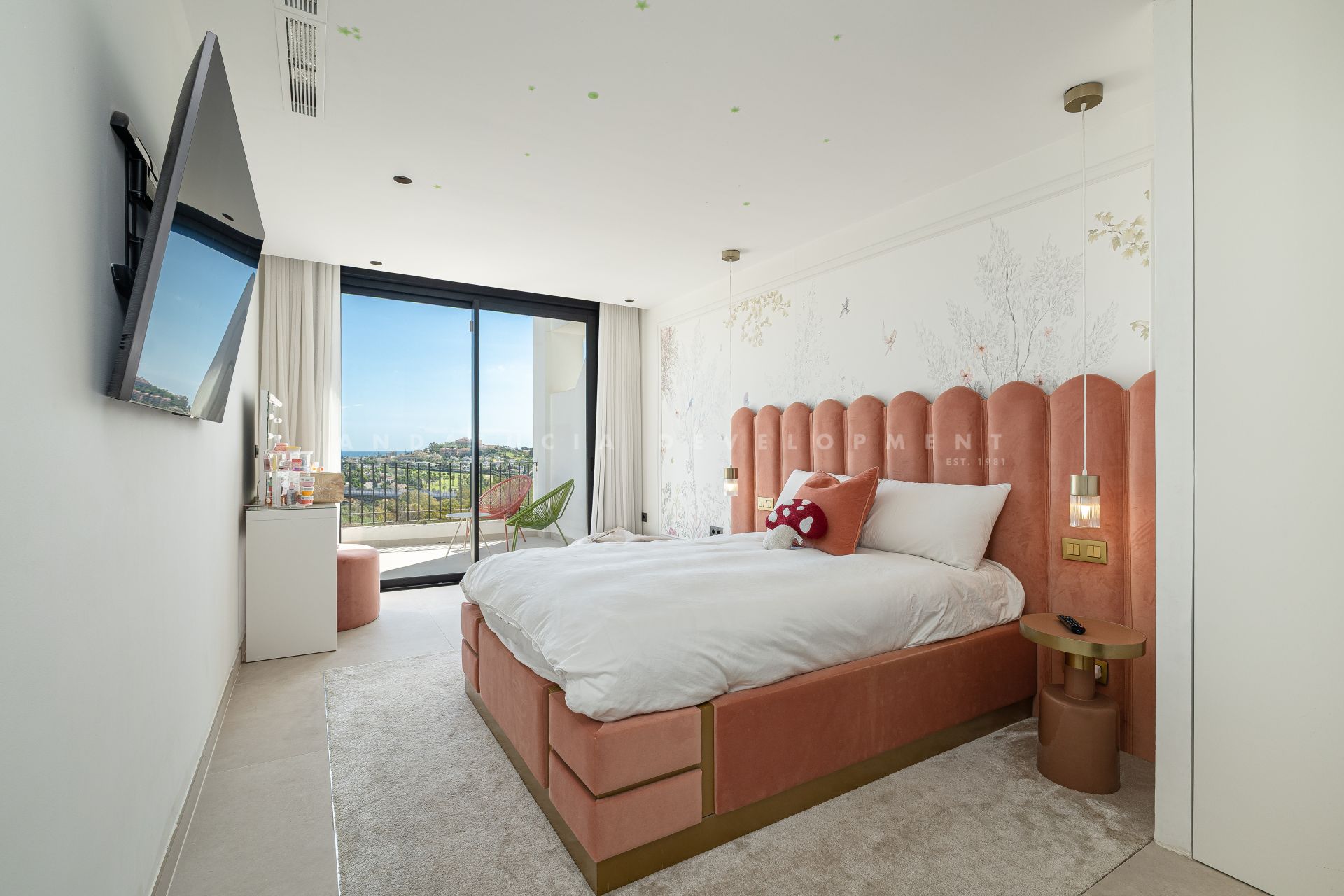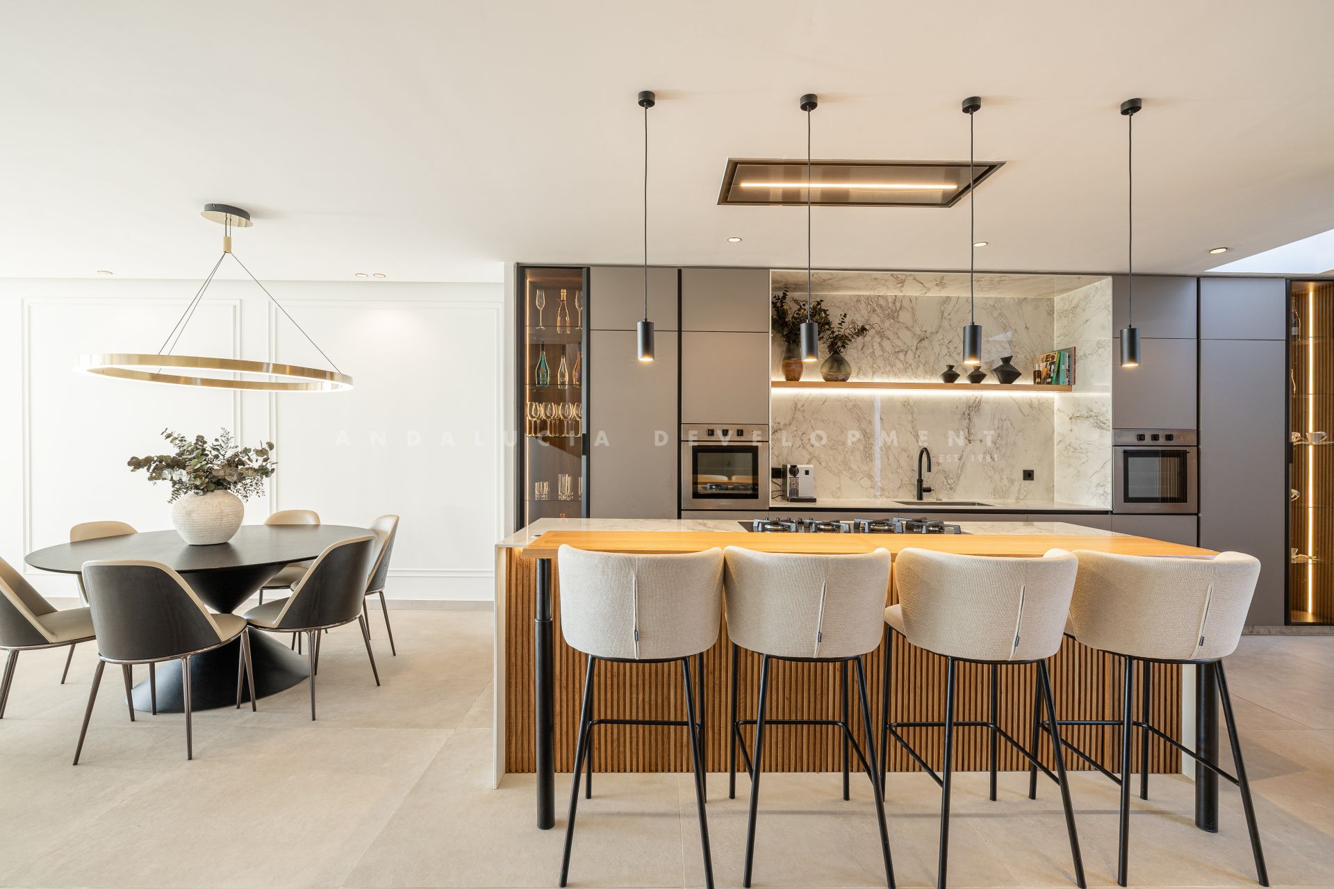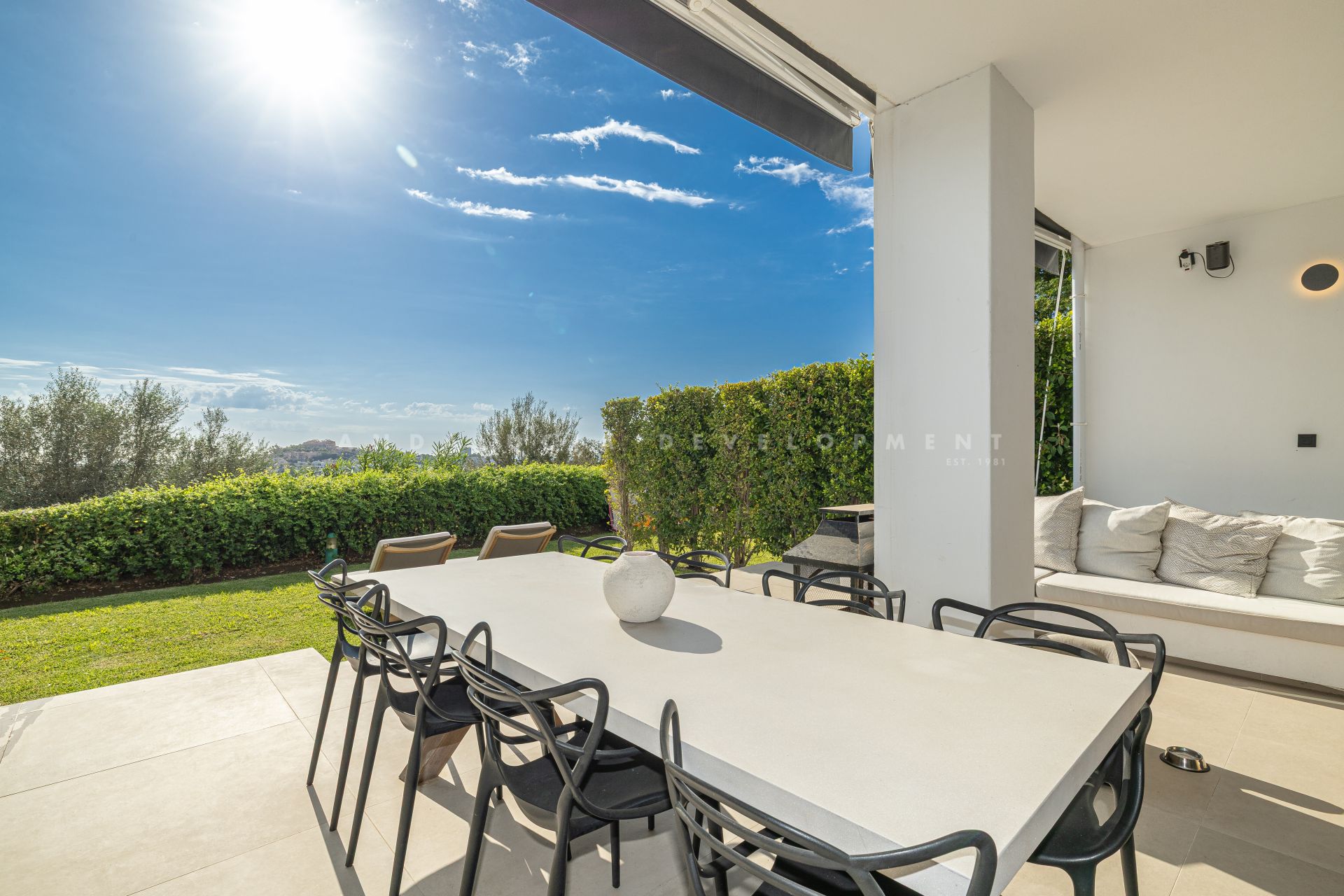 Elegante casa adosada con impresionantes vistas en La Quinta Golf. Ubicada en la prestigiosa comunidad de La Quinta Golf, esta casa adosada, bellamente renovada, ofrece impresionantes vistas al mar, al campo de golf y a la montaña desde todos los niveles. Diseñada para el lujo moderno, la casa cuenta con una luminosa sala de estar de planta abierta, una elegante cocina Barazza con isla central y una elegante chimenea de bioetanol. Amplias puertas correderas de suelo a techo dan a una espaciosa terraza, ideal para comer al aire libre y relajarse. La primera planta alberga tres elegantes dormitorios con baño en suite, dos de ellos con terraza privada. La suite principal, en la planta superior, ofrece un refugio privado con un lujoso baño en suite que incluye ducha de efecto lluvia y bañera exenta con vistas panorámicas. Equipada con un sistema de domótica, calefacción por suelo radiante, aire acondicionado integrado, sistema de sonido envolvente Sonos y wifi por cable, la residencia combina comodidad y funcionalidad de vanguardia. Otras características destacadas incluyen un sistema antical, un grifo de agua hirviendo instantáneo, dos plazas de aparcamiento privadas y un avanzado sistema de seguridad. Con su elegancia contemporánea y ubicación privilegiada en una de las zonas más solicitadas de Marbella, esta casa adosada es perfecta como residencia permanente, una escapada de vacaciones o una distinguida oportunidad de inversión.