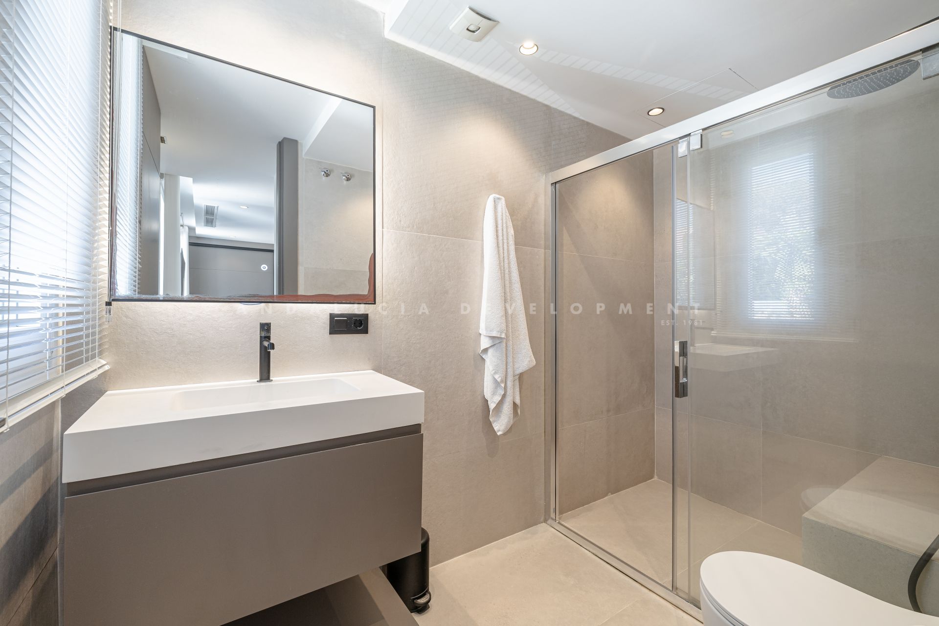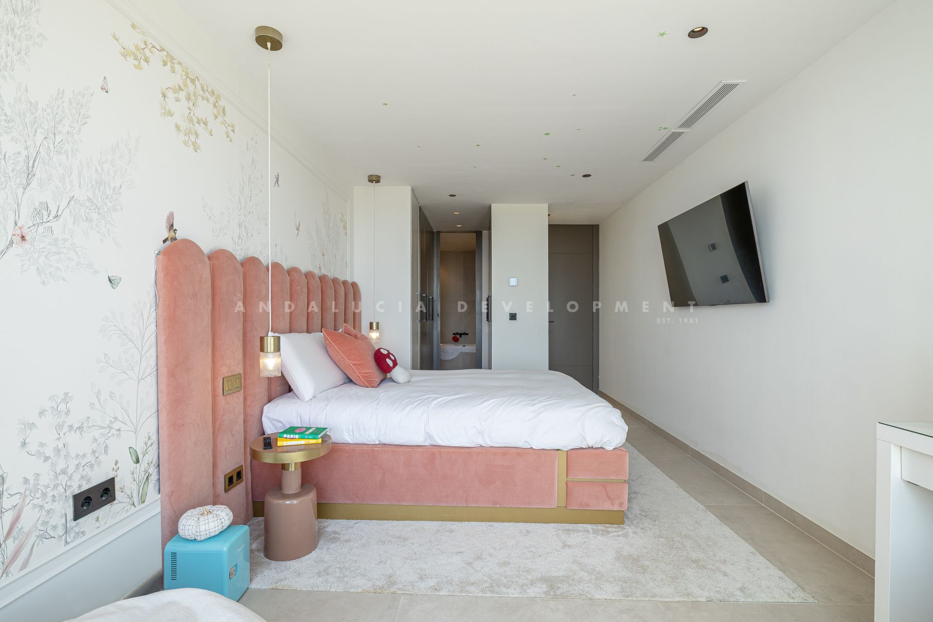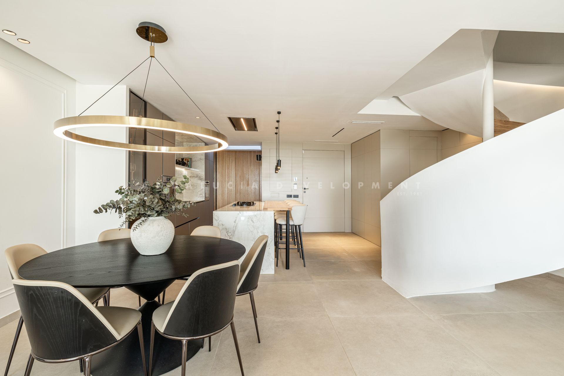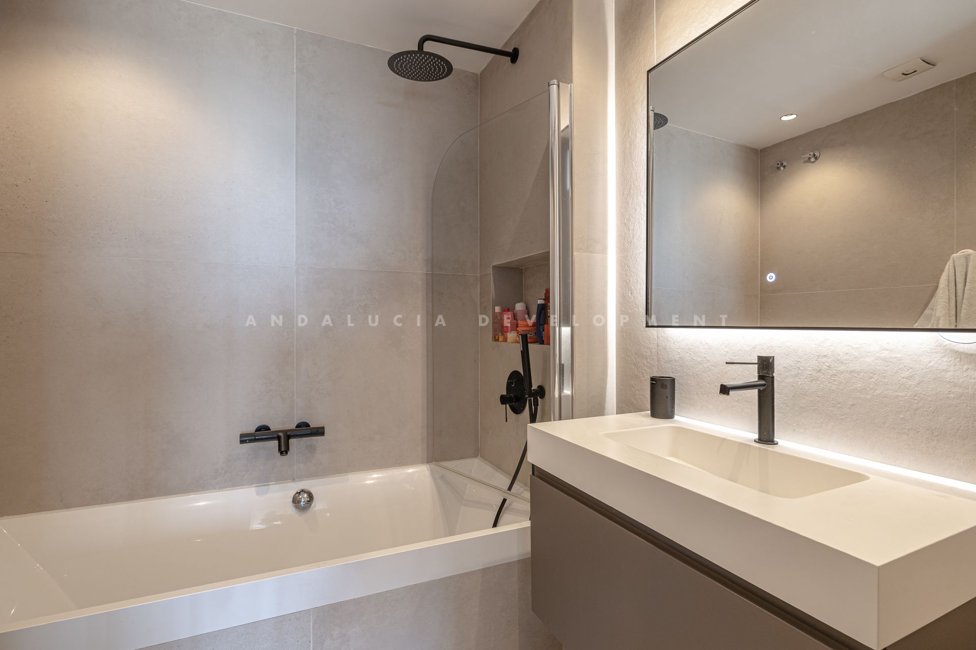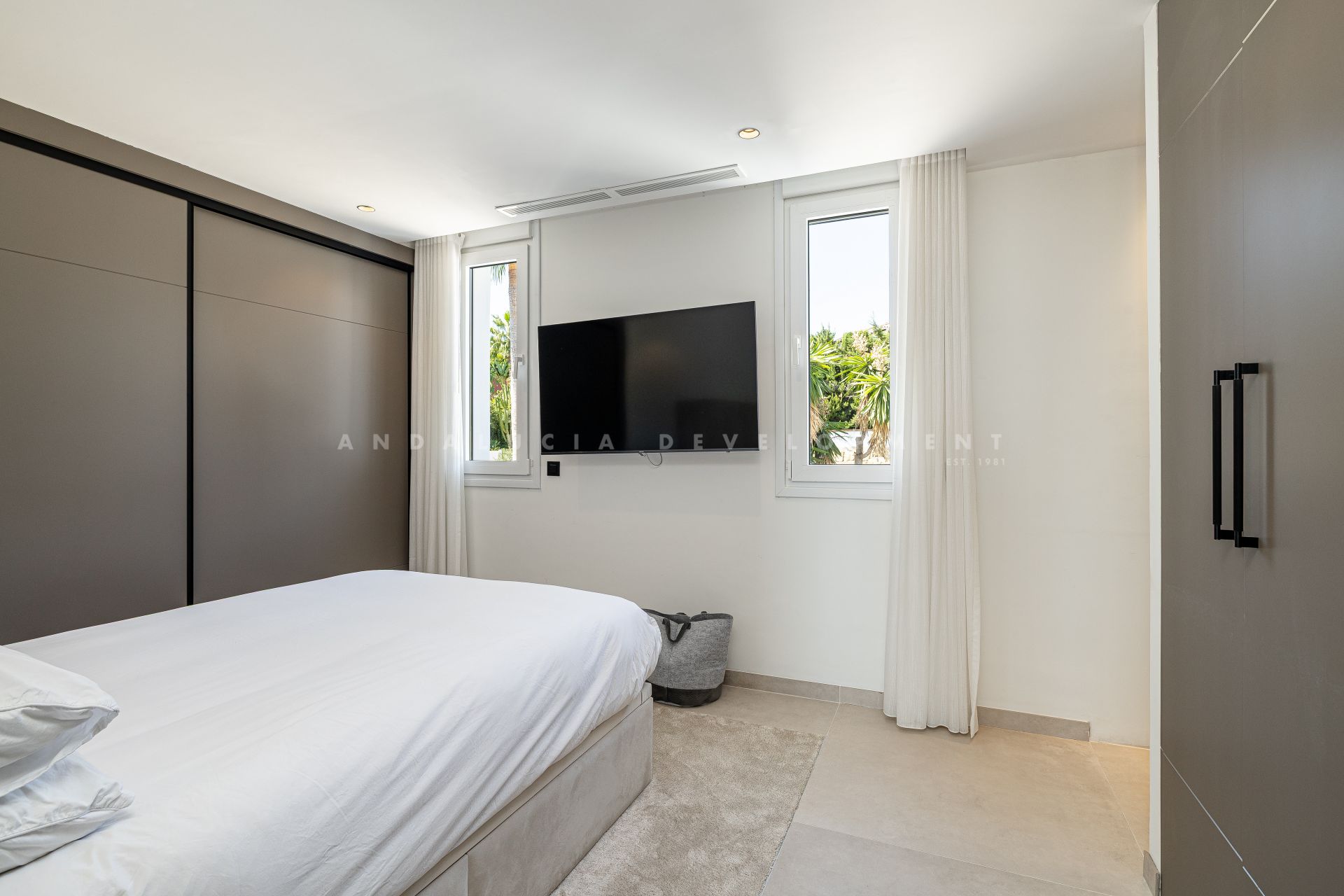 Elegante casa adosada con impresionantes vistas en La Quinta Golf. Ubicada en la prestigiosa comunidad de La Quinta Golf, esta casa adosada, bellamente renovada, ofrece impresionantes vistas al mar, al campo de golf y a la montaña desde todos los niveles. Diseñada para el lujo moderno, la casa cuenta con una luminosa sala de estar de planta abierta, una elegante cocina Barazza con isla central y una elegante chimenea de bioetanol. Amplias puertas correderas de suelo a techo dan a una espaciosa terraza, ideal para comer al aire libre y relajarse. La primera planta alberga tres elegantes dormitorios con baño en suite, dos de ellos con terraza privada. La suite principal, en la planta superior, ofrece un refugio privado con un lujoso baño en suite que incluye ducha de efecto lluvia y bañera exenta con vistas panorámicas. Equipada con un sistema de domótica, calefacción por suelo radiante, aire acondicionado integrado, sistema de sonido envolvente Sonos y wifi por cable, la residencia combina comodidad y funcionalidad de vanguardia. Otras características destacadas incluyen un sistema antical, un grifo de agua hirviendo instantáneo, dos plazas de aparcamiento privadas y un avanzado sistema de seguridad. Con su elegancia contemporánea y ubicación privilegiada en una de las zonas más solicitadas de Marbella, esta casa adosada es perfecta como residencia permanente, una escapada de vacaciones o una distinguida oportunidad de inversión.