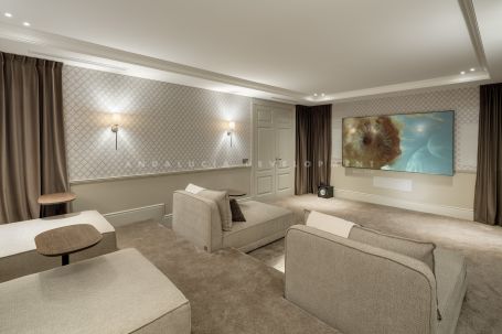 La propiedad cuenta con 695 m² de espacio interior y 32 m² de terrazas, combinando la elegancia del espacio interior con el disfrute del exterior. El jardín incluye una piscina de agua salada de 60 m², rodeada de jardines con un sistema de riego automático para mantener el verde durante todo el año. Un garaje privado para dos coches y un avanzado sistema de seguridad, complementado con la vigilancia 24/7 de La Zagaleta, garantizan la tranquilidad de los residentes. En la planta baja, la villa está diseñada para el bienestar y la relajación. Una sala de cine, un spa con sala de masajes, un gimnasio totalmente equipado y una bodega con control de temperatura ofrecen una amplia gama de opciones de ocio. Esta planta también incluye un apartamento de servicio con dos dormitorios en suite y una cocina, que facilita la funcionalidad de la vivienda sin comprometer la privacidad. Un detalle destacable es la sala de máquinas, que permite que las instalaciones técnicas estén separadas de la vivienda principal, reduciendo el ruido y facilitando el mantenimiento. Cada detalle ha sido cuidadosamente diseñado, desde la sala técnica hasta la integración del sistema domótico Zennio para el control de iluminación, seguridad y climatización. A tan solo 12 minutos de tiendas y 20 minutos de prestigiosos colegios internacionales como Aloha College y Swans International School, esta villa ofrece un estilo de vida equilibrado, donde naturaleza, lujo y comodidad se combinan a la perfección.