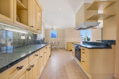 Ubicado en la prestigiosa urbanización cerrada de Las Alamandas en Nueva Andalucía, este espacioso ático dúplex de 3 dormitorios ofrece la combinación perfecta de lujo, privacidad y seguridad a pocos minutos de Puerto Banús y a un paseo de reconocidos campos de golf como Los Naranjos y Las Brisas. La propiedad cuenta con ascensor privado, un amplio salón-comedor con chimenea, cocina totalmente equipada, amplias terrazas con vistas panorámicas al jardín y vistas parciales al mar, y tres dormitorios con baño en suite. El dormitorio principal, ubicado en la planta superior, cuenta con terraza privada y un lujoso baño con bañera y ducha. Otras características incluyen dos plazas de garaje, un trastero y acceso a tres piscinas (una climatizada), exuberantes jardines tropicales, seguridad 24 horas y videovigilancia.