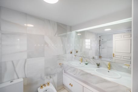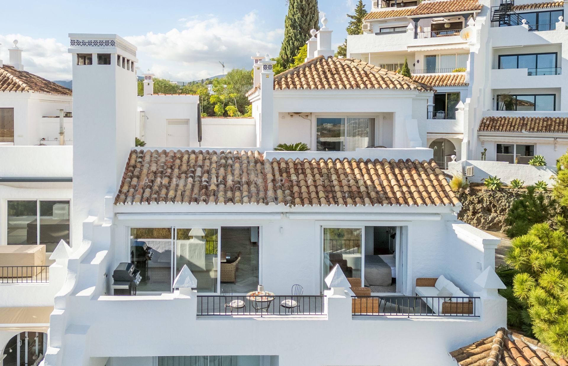 Este excepcional ático dúplex de 241 m², que incluye 84 m² de amplias terrazas, ofrece una combinación perfecta de espacio, luz natural y vistas impresionantes. Desde aquí, disfrute de impresionantes vistas al resplandeciente mar Mediterráneo, la icónica montaña de La Concha e incluso Gibraltar. La distribución, cuidadosamente diseñada, cuenta con tres amplios dormitorios, cada uno con baño en suite. En la planta de entrada se encuentran dos dormitorios, uno de ellos con acceso directo a una soleada terraza. La planta superior está dedicada a la suite principal, un elegante refugio con acceso directo a una gran terraza solárium, ideal para relajarse o disfrutar del tiempo libre. La terraza alberga cómodamente un comedor, tumbonas, una cocina exterior y una ducha. El aparcamiento está convenientemente ubicado justo afuera de la residencia. Esta propiedad, ubicada en una urbanización cerrada, bien mantenida y segura, con piscina panorámica, también ofrece un gran potencial de alquiler, lo que la convierte en una vivienda permanente, una residencia vacacional de lujo o una inversión rentable. Campos de golf, restaurantes, tiendas, colegios internacionales y las doradas playas de Marbella se encuentran a solo 5-10 minutos en coche.