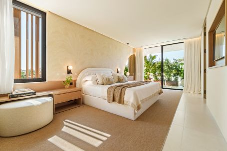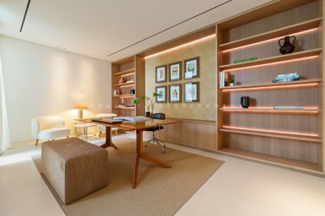 Enclavada en las exuberantes colinas de Marbella, esta villa se integra a la perfección con la naturaleza circundante, impactando con su excepcional diseño. La villa ha sido diseñada con grandes mamparas de cristal en toda la casa, integrando armoniosamente el interior con el exterior. Confiere al interior una sensación de serenidad y tranquilidad, con la madera y la piedra como elementos principales. La distribución de la villa está cuidadosamente planificada y perfectamente dividida entre zonas de privacidad y ocio. Al entrar en la casa, se encuentra el amplio salón y la cocina, que se abren a las amplias terrazas y al jardín. Una espaciosa cocina de elegante madera clara ofrece vistas a las zonas sociales del salón y el comedor. Esta planta también ofrece un dormitorio de invitados en suite con acceso a la terraza. En la primera planta se encuentran tres dormitorios: dos de ellos en suite con acceso a la terraza de la primera planta y el dormitorio principal, una espaciosa suite de diseño sereno con vestidor y baño con ducha de efecto lluvia y bañera. El sótano está diseñado para su tranquilidad y bienestar. Aquí podrá mimarse en el spa, hacer ejercicio en el gimnasio o disfrutar de una copa de vino en la bodega. También dispone de un despacho, una sala de juegos y otro dormitorio de invitados con baño en suite y acceso al jardín y a la piscina. Al aire libre, encontrará jardines bien cuidados y una zona de piscina con salón, comedor y cocina exterior. Esta villa está diseñada para combinar a la perfección un diseño excepcional, una distribución abierta, privacidad y serenidad.