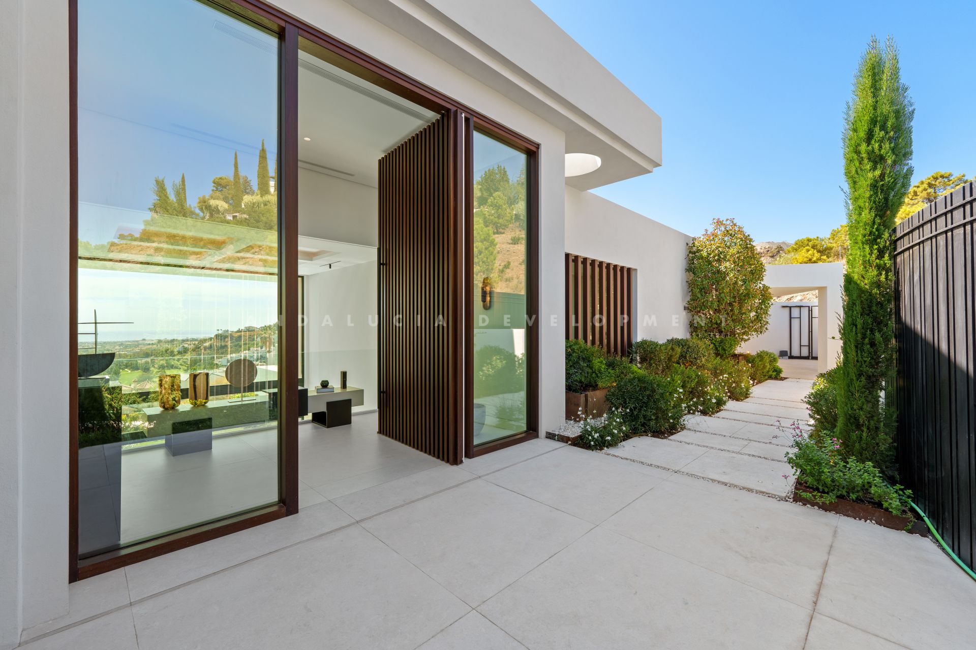 Esta moderna residencia de seis dormitorios se encuentra en una parcela de 1.515 m² en la urbanización privada de Lomas de La Quinta. La propiedad combina precisión arquitectónica con funcionalidad, diseñada para maximizar el espacio, la luz y las vistas panorámicas del paisaje circundante. Su posición elevada garantiza privacidad, a la vez que ofrece vistas panorámicas al Mediterráneo y las montañas circundantes. La casa se estructura en torno a un concepto de planta abierta, conectando a la perfección las zonas de estar, comedor y cocina con amplias terrazas. Las puertas de cristal de suelo a techo crean una fluidez natural entre los espacios interiores y exteriores, realzando la sensación de luminosidad y amplitud. Las múltiples zonas de estar y comedor, tanto en el interior como en el exterior, hacen de la propiedad un lugar ideal tanto para la vida familiar contemporánea como para el entretenimiento. Una planta completa de la propiedad está dedicada al ocio y el bienestar. Esto incluye un gimnasio totalmente equipado, instalaciones de spa y una piscina cubierta diseñada con acabados modernos. Un espacio de entretenimiento independiente proporciona mayor versatilidad, creando un entorno ideal para cine, juegos o reuniones sociales. La integración de estas características convierte a la propiedad en una residencia integral para un estilo de vida completo. En el exterior, esta villa ofrece amplias terrazas, jardines paisajísticos y una piscina infinita con vistas al valle circundante. La combinación de tamaño, ubicación e instalaciones la convierte en una propiedad excepcional en la zona, atractiva para quienes buscan una propiedad moderna de alta calidad en una de las urbanizaciones privadas más codiciadas de Benahavís.