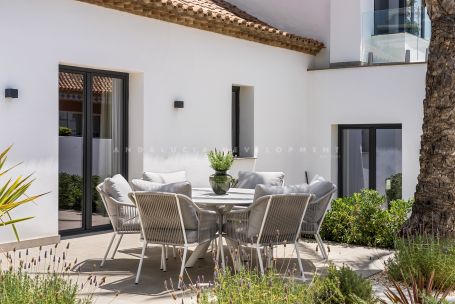 Los techos de teja tradicionales se combinan con interiores modernos, techos de doble altura y ventanales que inundan los espacios de luz natural. Distribuida en tres plantas conectadas por un ascensor, la distribución equilibra la escala, la fluidez y la comodidad. La planta principal conecta el salón y el comedor con una cocina Gaggenau totalmente equipada con carpintería italiana. Seis dormitorios con baño en suite se distribuyen por toda la casa, junto con un amplio despacho que puede convertirse en un séptimo dormitorio. En la planta baja, un segundo salón con cocina americana, una sala de cine, un gimnasio totalmente equipado con baño turco y ducha, y una zona de lavandería amplían los espacios de estar. Los baños cuentan con grifería Gessi y azulejos italianos de gran formato porcelánico. Una parcela ajardinada enmarca la piscina climatizada de agua salada y las terrazas diseñadas para disfrutar del aire libre. Esta propiedad incluye un garaje para tres coches y aparcamiento adicional en la entrada.