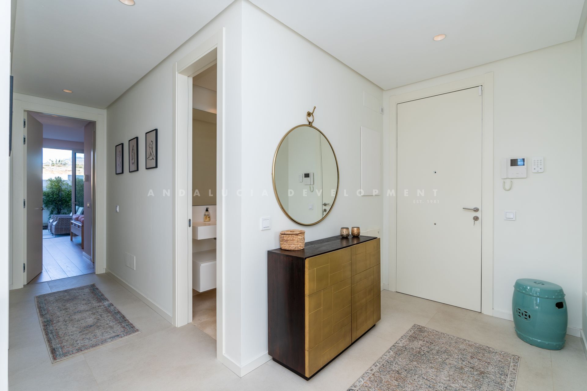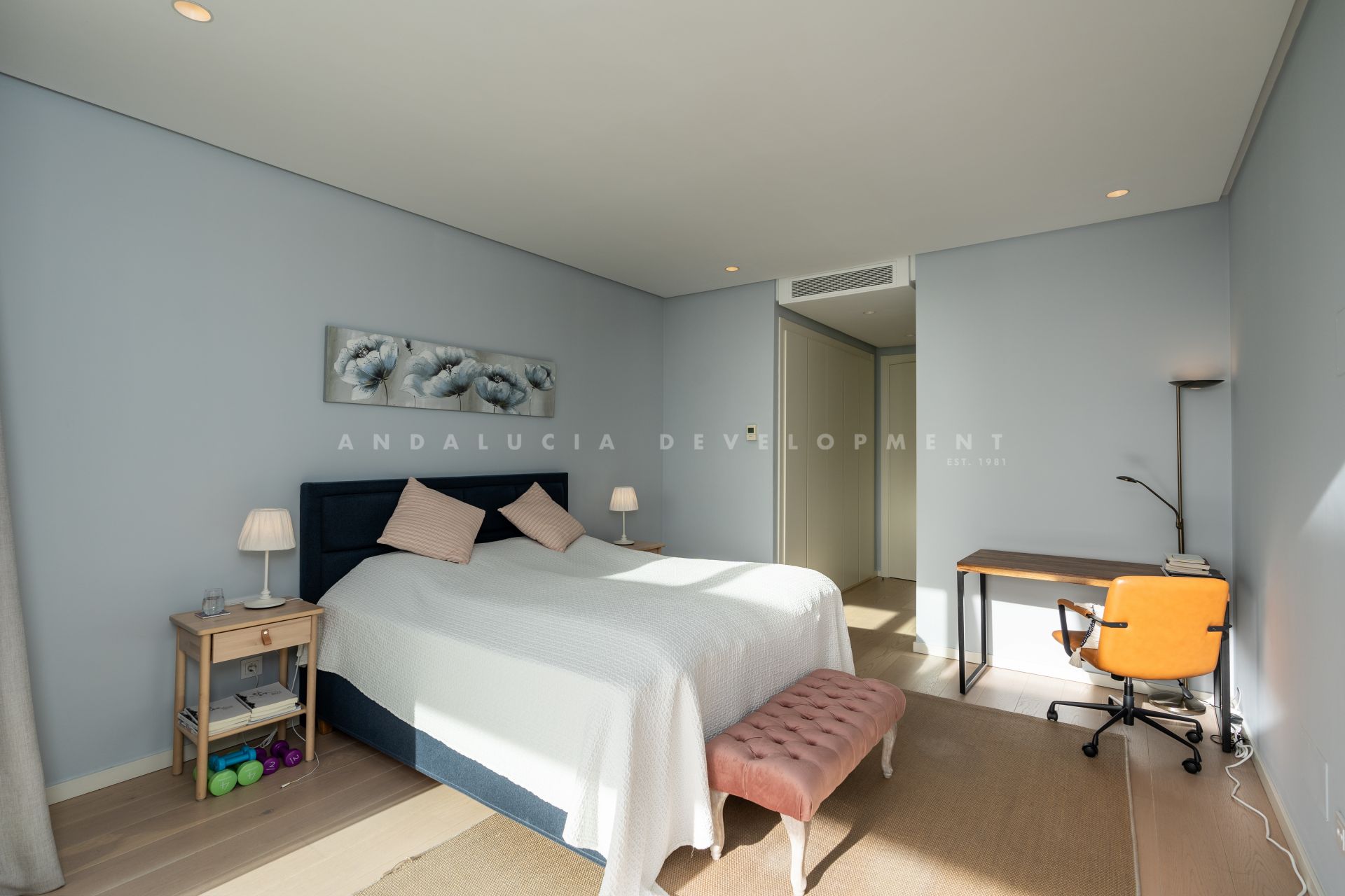 Experimente la esencia del lujo mediterráneo en este elegante apartamento con vistas panorámicas al mar, Gibraltar y las montañas del Atlas, perfectamente ubicado en uno de los mejores bloques de la prestigiosa urbanización cerrada Marbella Club Hills. Esta exquisita residencia de 160 m² con orientación sur combina armoniosamente estilo, confort y tranquilidad. Diseñada para una perfecta integración entre el interior y el exterior, cuenta con tres amplias terrazas que suman 74 m² y un jardín privado de 85 m² con un hermoso diseño paisajístico, ideal para disfrutar de tardes soleadas o cenas al aire libre con impresionantes puestas de sol de fondo. El salón-comedor de planta abierta se inunda de luz natural gracias a sus ventanales que enmarcan la costa panorámica. Una cocina contemporánea totalmente equipada con lavadero independiente ofrece serenas vistas al campo y a la montaña. Pensada para garantizar la privacidad, la distribución de los dormitorios es ideal para recibir a familiares y amigos. Cada uno de los tres dormitorios incluye baño privado y acceso directo a la terraza, además de un aseo adicional para invitados. La suite principal es un remanso de paz, con armarios empotrados, un lujoso baño privado y una terraza privada: el lugar perfecto para disfrutar de un café matutino tranquilo o relajarse al atardecer.