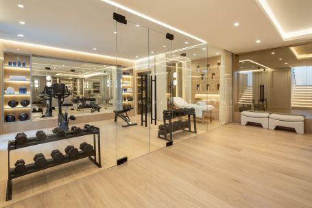 La cuidada distribución de la villa continúa en el sótano, con un gimnasio totalmente equipado, un spa, una sala de cine y juegos, además de una bodega, ideal para el entretenimiento y la relajación. Además, una práctica lavandería y un dormitorio adicional completan esta planta. La primera planta está reservada para el descanso personal, con la suite principal y dos amplios dormitorios más, cada uno con magníficas vistas y un acabado impecable.