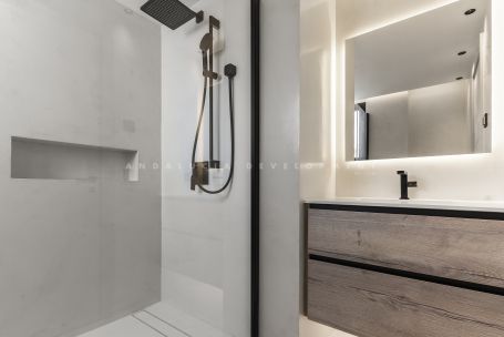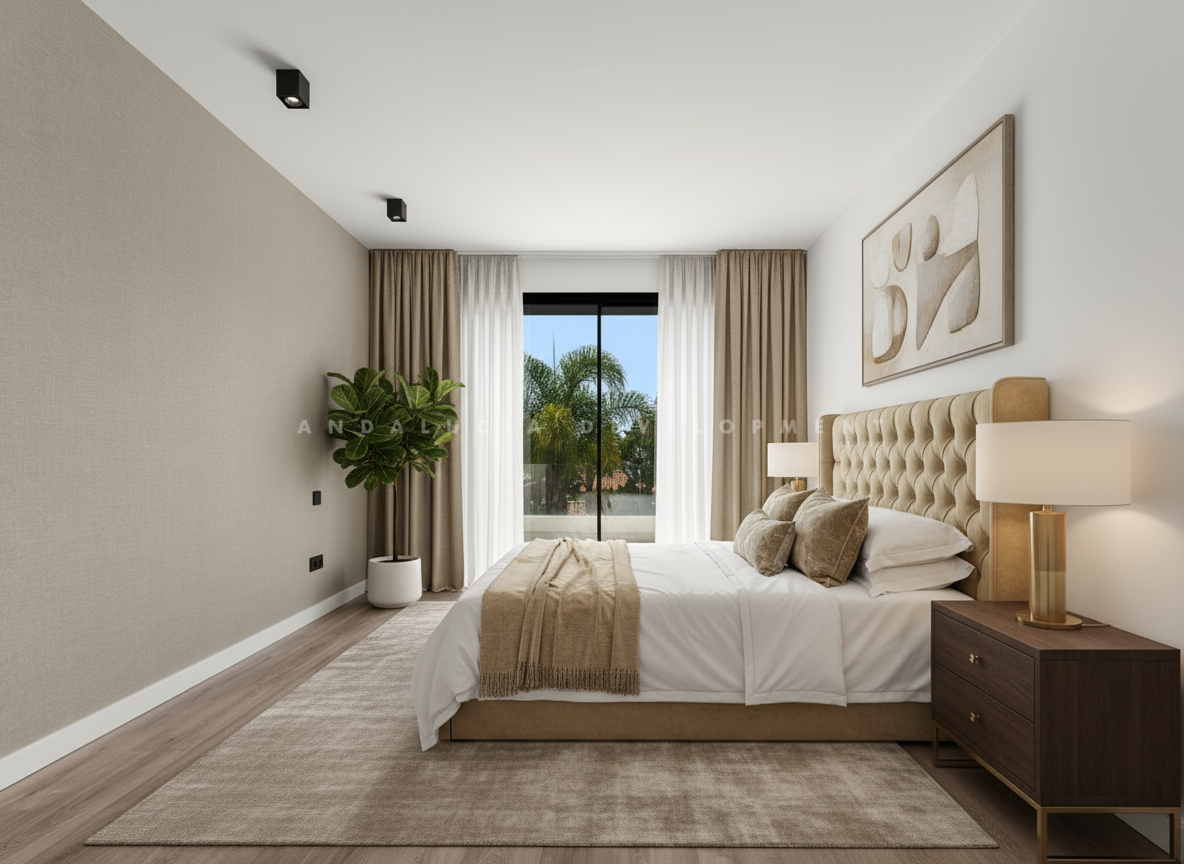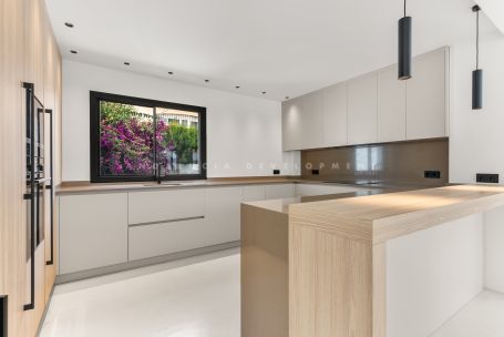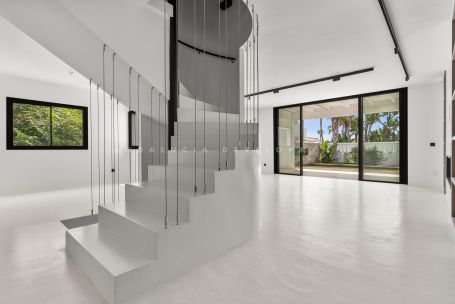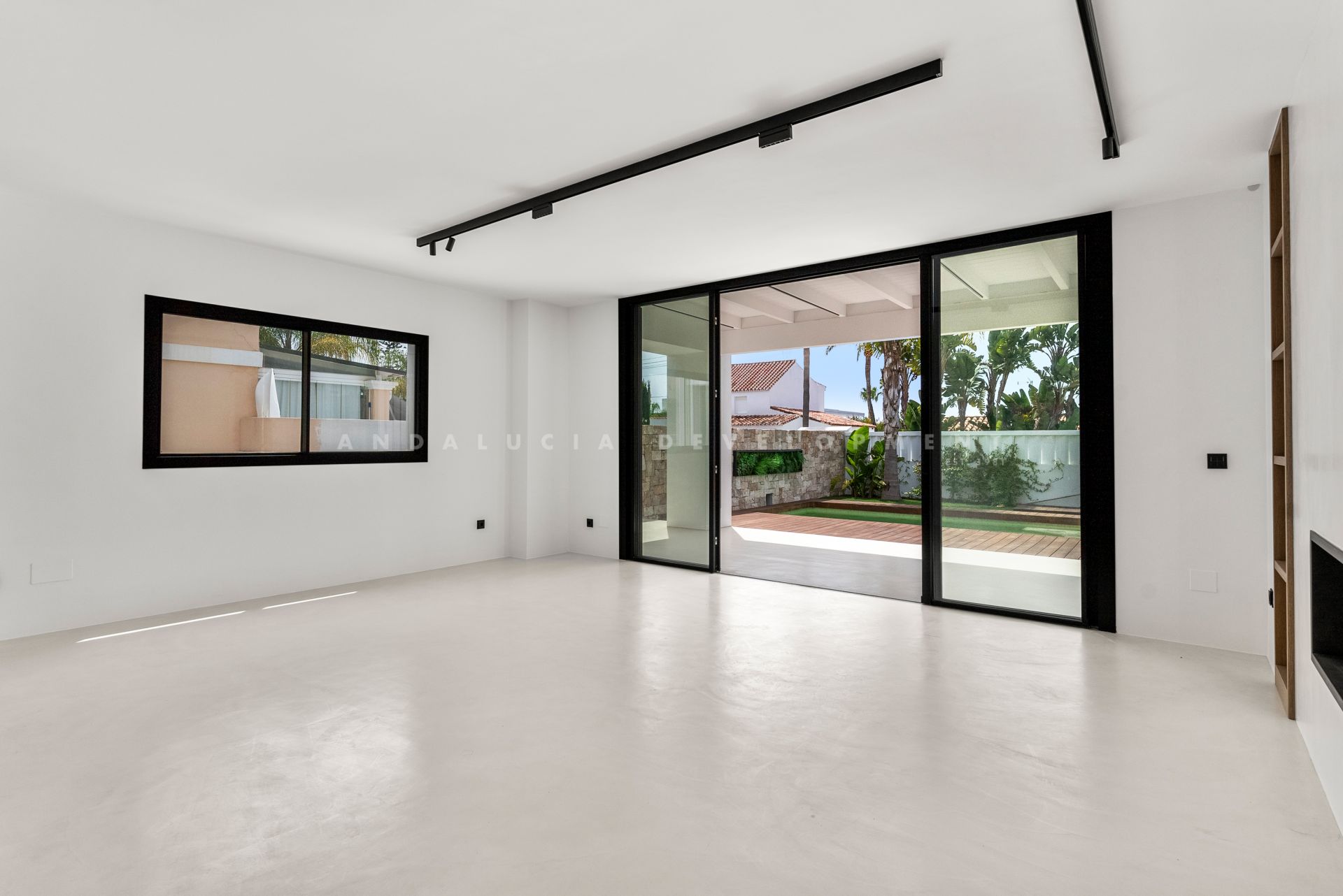 A solo 200 metros de la playa, esta propiedad es una villa de cinco dormitorios recientemente renovada que combina el encanto andaluz con un diseño moderno. Ubicada en la Nueva Milla de Oro, esta casa ofrece luminosos espacios abiertos, jardines privados y una piscina orientada al sur. Cada detalle se ha pensado para la comodidad y el estilo, desde los suelos de parqué hasta la cocina Siemens totalmente equipada. Esta villa costera contemporánea está lista para entrar a vivir hoy mismo. Distribuida en cuatro plantas, la casa ofrece elegante simplicidad y funcionalidad. Tres baños en suite cuentan con duchas a ras de suelo y acabados refinados. El dormitorio abuhardillado, con abundante luz natural gracias a sus tragaluces, crea un remanso de paz. Una escalera escultural conecta las plantas, desde la espaciosa sala de estar hasta un garaje seguro en la planta baja. La tecnología de domótica, el doble acristalamiento y los sistemas de energía solar añaden practicidad moderna a su atractivo atemporal. En el exterior, esta villa captura la esencia de la vida mediterránea. La piscina privada, el solárium y el jardín paisajístico ofrecen diversión durante todo el año. Hay espacio para un gimnasio, una sala de cine o una sala de bienestar que se adapte a su estilo de vida. Ubicada a solo unos pasos de la arena y cerca de tiendas y restaurantes, Villa Acqua es más que un hogar: es una declaración de lujo refinado junto a la playa.