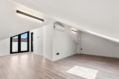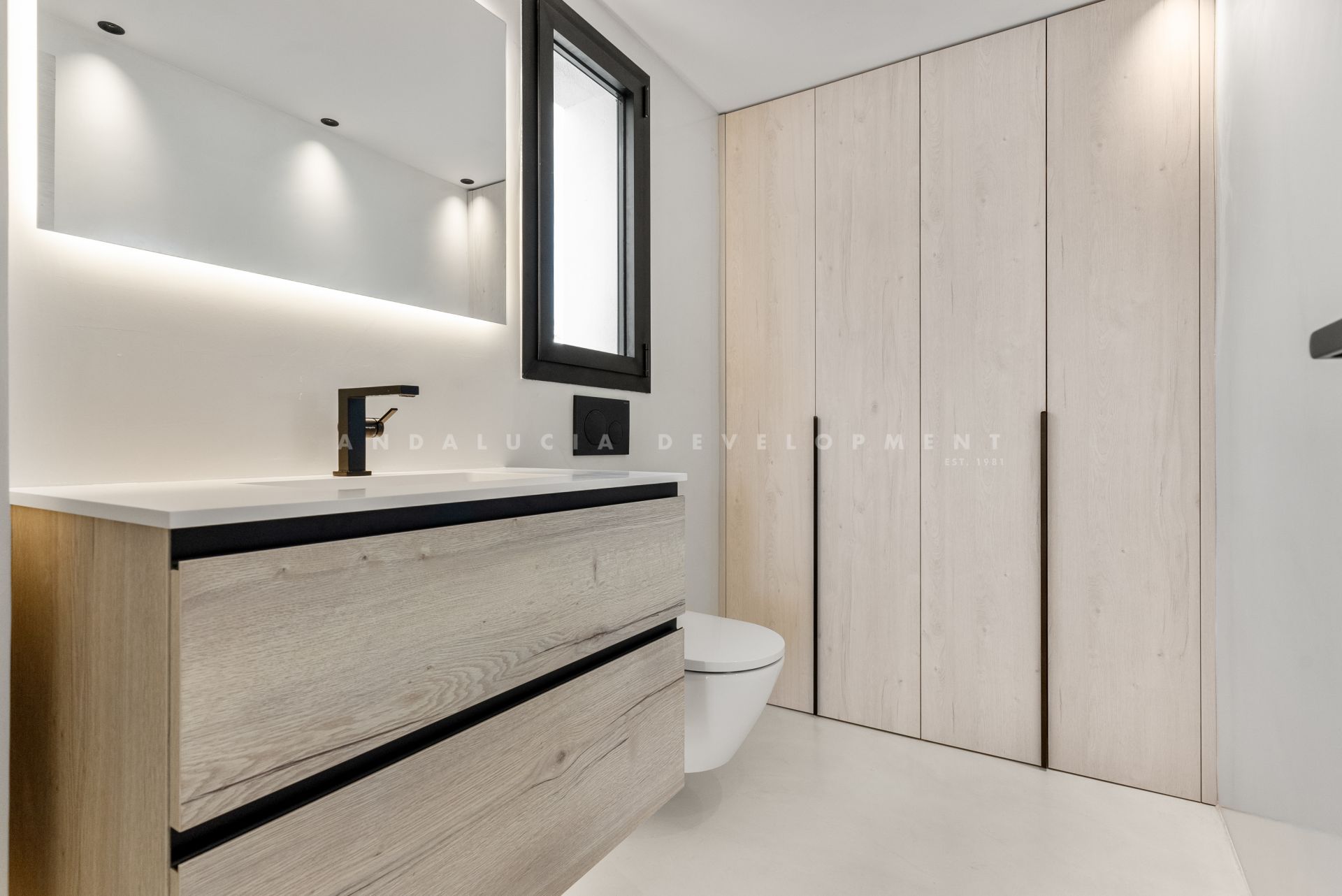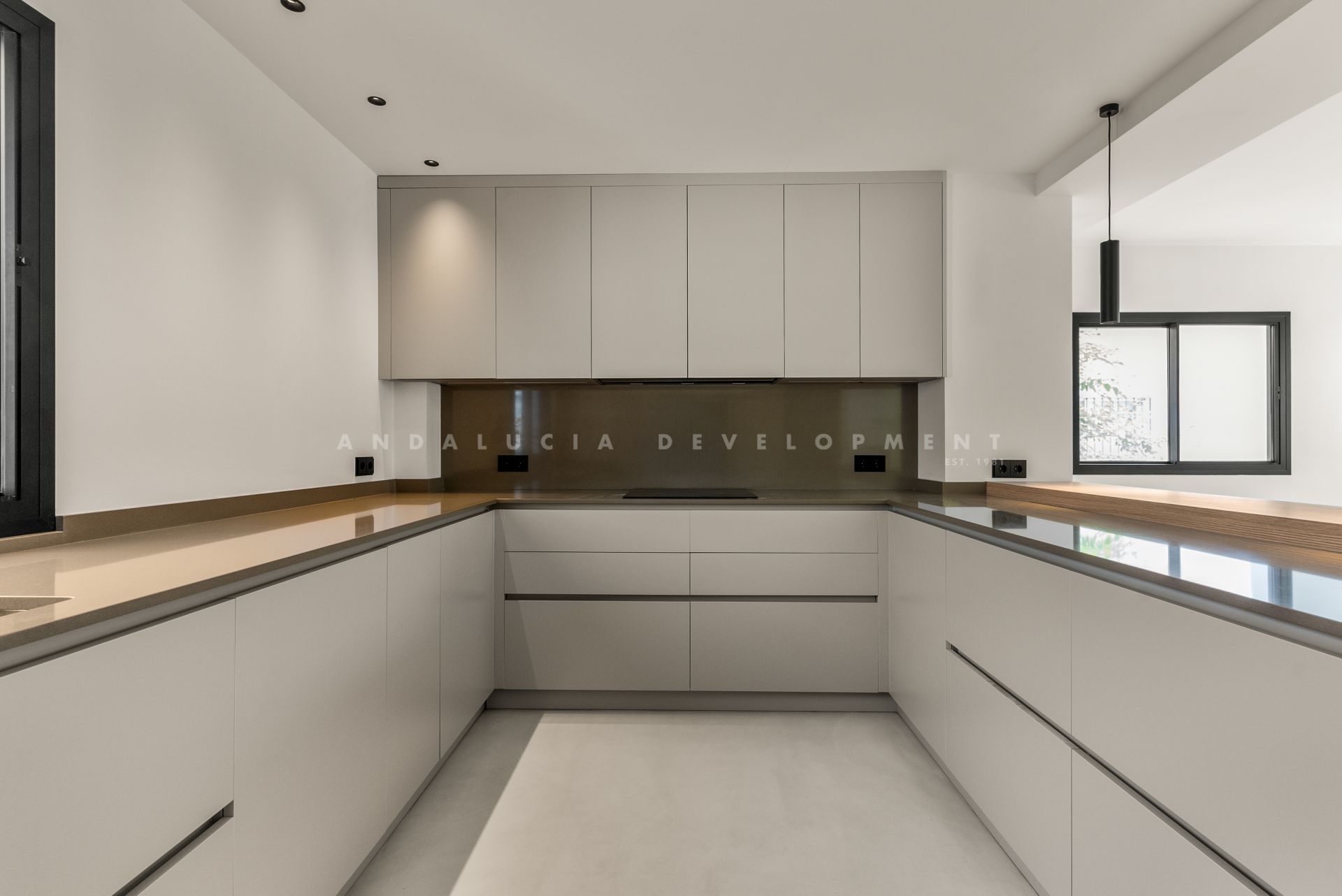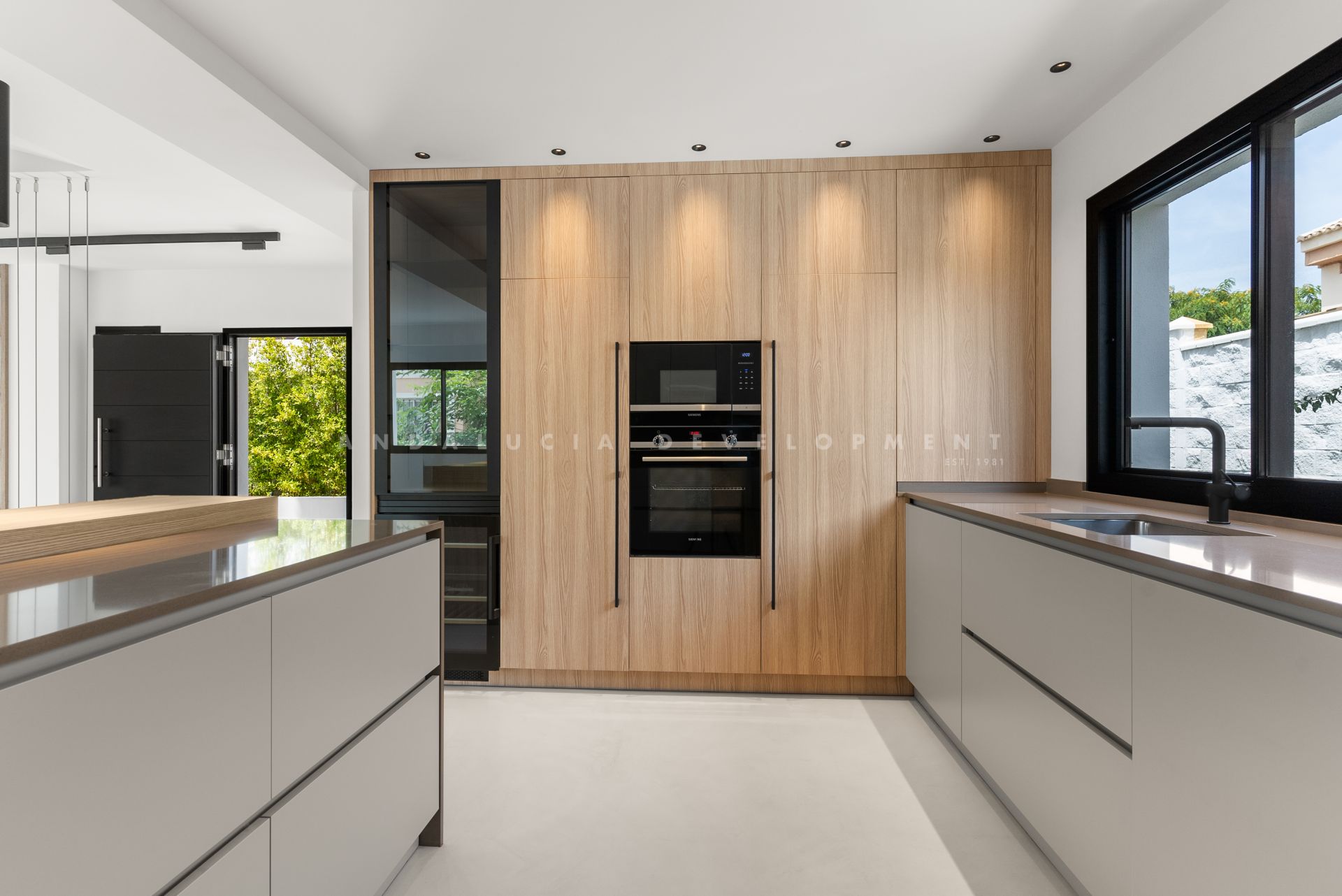 A solo 200 metros de la playa, esta propiedad es una villa de cinco dormitorios recientemente renovada que combina el encanto andaluz con un diseño moderno. Ubicada en la Nueva Milla de Oro, esta casa ofrece luminosos espacios abiertos, jardines privados y una piscina orientada al sur. Cada detalle se ha pensado para la comodidad y el estilo, desde los suelos de parqué hasta la cocina Siemens totalmente equipada. Esta villa costera contemporánea está lista para entrar a vivir hoy mismo. Distribuida en cuatro plantas, la casa ofrece elegante simplicidad y funcionalidad. Tres baños en suite cuentan con duchas a ras de suelo y acabados refinados. El dormitorio abuhardillado, con abundante luz natural gracias a sus tragaluces, crea un remanso de paz. Una escalera escultural conecta las plantas, desde la espaciosa sala de estar hasta un garaje seguro en la planta baja. La tecnología de domótica, el doble acristalamiento y los sistemas de energía solar añaden practicidad moderna a su atractivo atemporal. En el exterior, esta villa captura la esencia de la vida mediterránea. La piscina privada, el solárium y el jardín paisajístico ofrecen diversión durante todo el año. Hay espacio para un gimnasio, una sala de cine o una sala de bienestar que se adapte a su estilo de vida. Ubicada a solo unos pasos de la arena y cerca de tiendas y restaurantes, Villa Acqua es más que un hogar: es una declaración de lujo refinado junto a la playa.