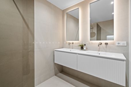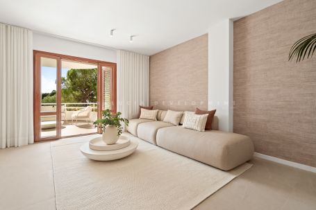 Este apartamento reformado se encuentra en Alcores del Golf, Nueva Andalucía, una propiedad con orientación sur, muy luminosa y un diseño limpio y minimalista. Su distribución diáfana conecta el salón con una moderna cocina, y la amplia terraza cuenta con barbacoa, comedor y un relajante espacio exterior con vistas a la vegetación. Dispone de tres dormitorios y tres baños, todos de generosos espacios. El apartamento está situado junto al campo de golf Los Naranjos, ideal para los amantes del golf, con otros campos de golf de renombre como Las Brisas y Aloha en las cercanías. También está convenientemente cerca de Puerto Banús, las playas locales y una amplia gama de restaurantes y tiendas en Nueva Andalucía.