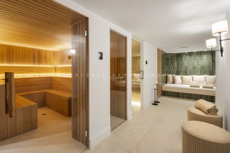 En el interior, la villa deslumbra con espacios diáfanos y luminosos, inundados de luz natural, techos altos y elegantes tonos neutros. La villa cuenta con varios salones, una exquisita cocina a medida, un cine en casa de última generación, una bodega y un gimnasio y spa totalmente equipados. Cada uno de los cinco espaciosos dormitorios es un refugio privado, con elegantes baños en suite y acceso directo a terrazas o exuberantes zonas exteriores. La perfecta conexión entre los espacios interiores y exteriores la hace ideal para el entretenimiento, la relajación y el disfrute del sol de Marbella durante todo el año. El exterior es igualmente impresionante, con una espectacular piscina, un salón con hoguera en desnivel y amplias terrazas ideales para comer al aire libre. Cipreses maduros y un vibrante paisaje brindan privacidad y un ambiente sereno, mientras que la posición elevada de la propiedad ofrece vistas al valle del golf circundante. A solo minutos de campos de golf de clase mundial, colegios internacionales, restaurantes de lujo y Puerto Banús. Esta residencia es una verdadera joya que combina a la perfección una vida de lujo con una ubicación inmejorable.