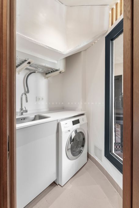Bienvenido a este apartamento recientemente reformado con buen gusto en Palacetes de Belvederes en Nueva Andalucia. Al entrar, le recibe un amplio espacio abierto, luminoso y con la sensación de un loft. Todos los materiales han sido cuidadosamente seleccionados por el actual propietario y se han combinado con gran gusto, como la cocina de diseño con electrodomésticos Gaggenau y el suelo de madera en espiga de Dinamarca. Su ubicación le da la sensación de un ático y podrá disfrutar de fantásticas vistas al mar y a la montaña desde su amplia terraza. Dispone de una amplia plaza de aparcamiento en el sótano, aparcamiento para buggies y un amplio trastero. Esta urbanización de estilo boutique cuenta con jardines bien cuidados, gimnasio y piscina.